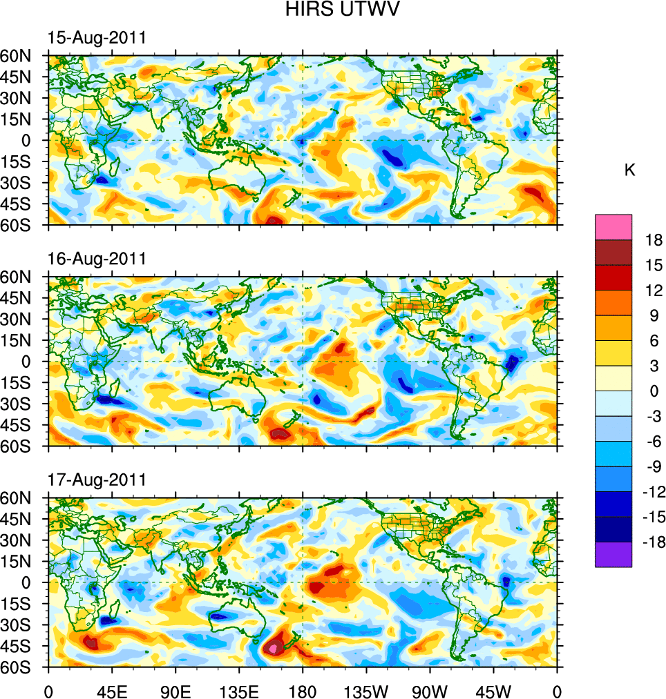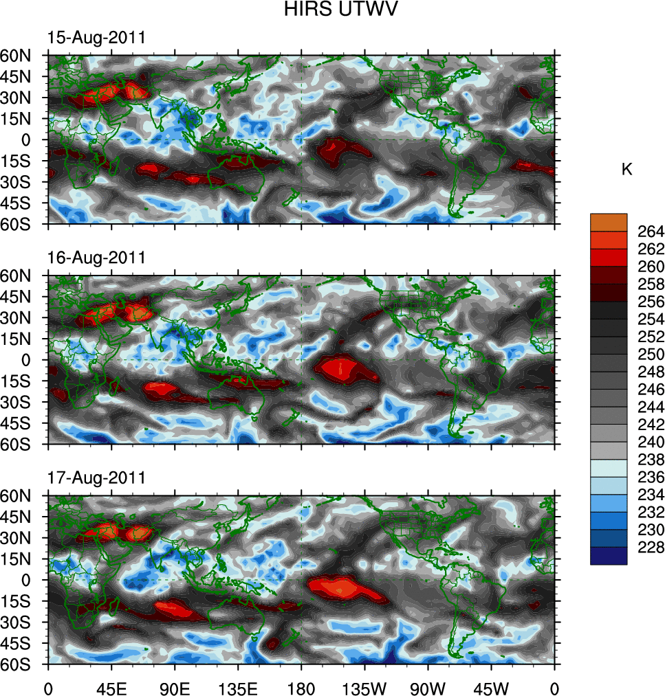 o   These brightness temperatures are observed with the HIRS sensor on the NOAA and MetOp polar-orbiting satellites.