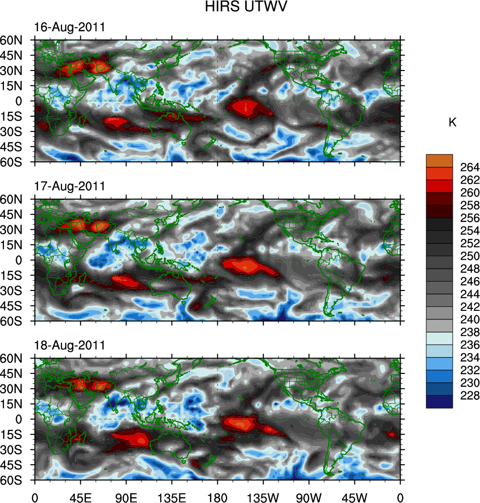 o   These brightness temperatures are observed with the HIRS sensor on the NOAA and MetOp polar-orbiting satellites.