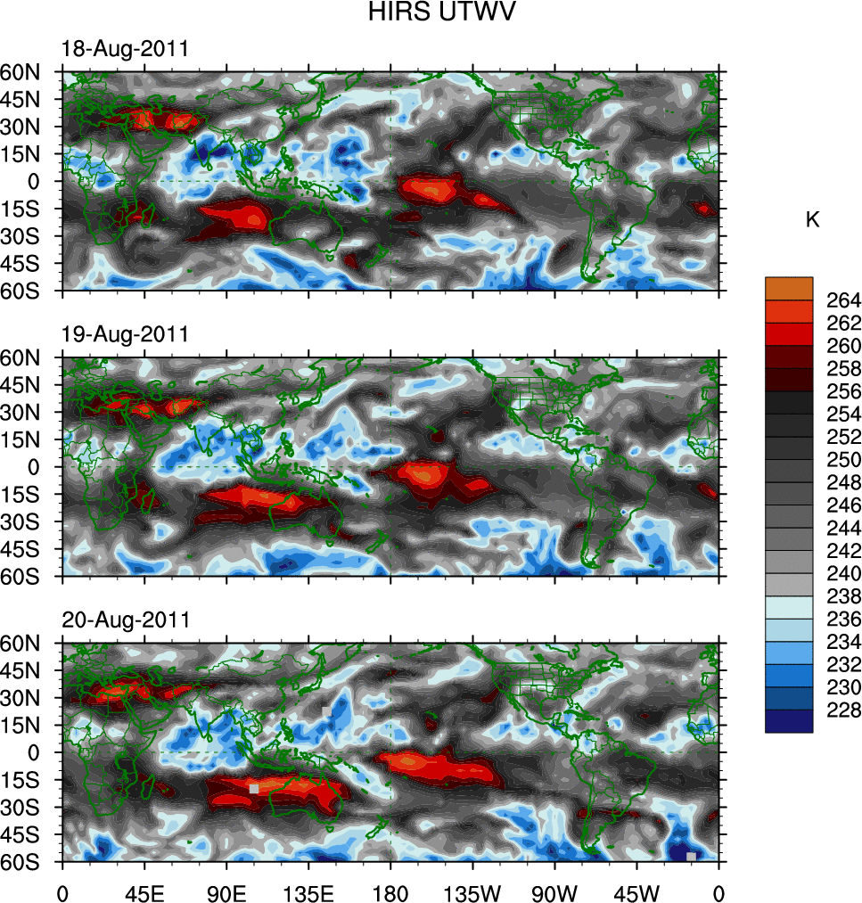 o   These brightness temperatures are observed with the HIRS sensor on the NOAA and MetOp polar-orbiting satellites.