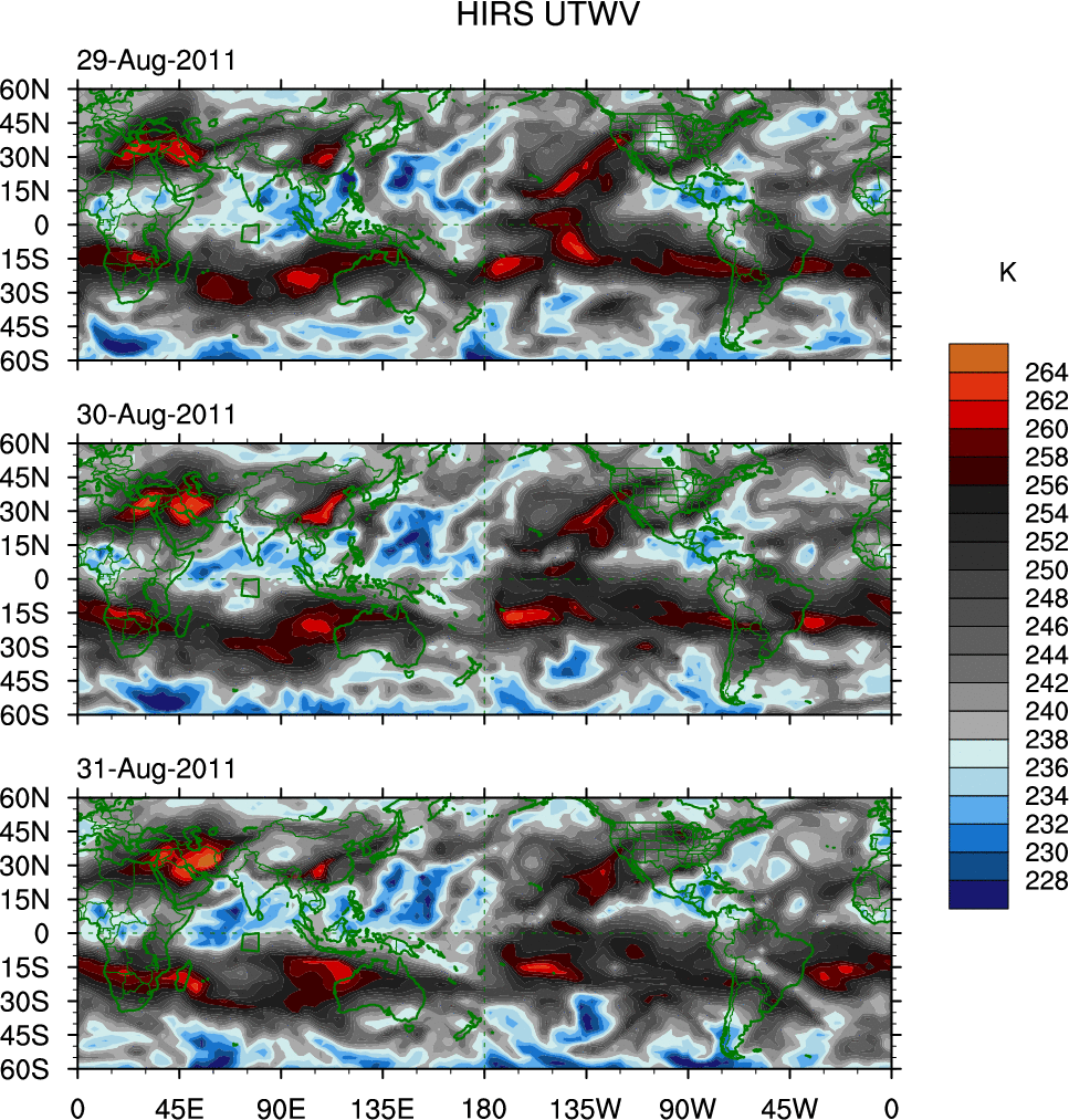 o   These brightness temperatures are observed with the HIRS sensor on the NOAA and MetOp polar-orbiting satellites.