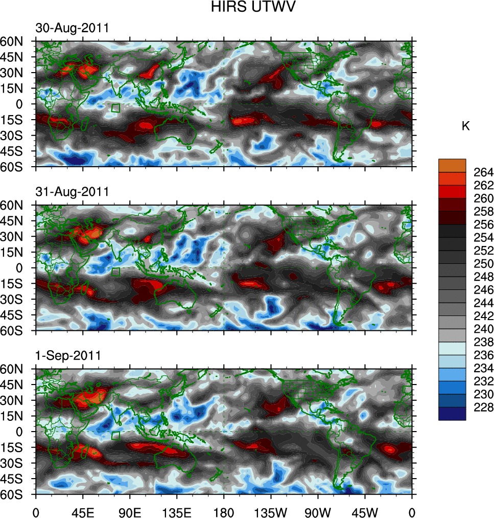 o   These brightness temperatures are observed with the HIRS sensor on the NOAA and MetOp polar-orbiting satellites.