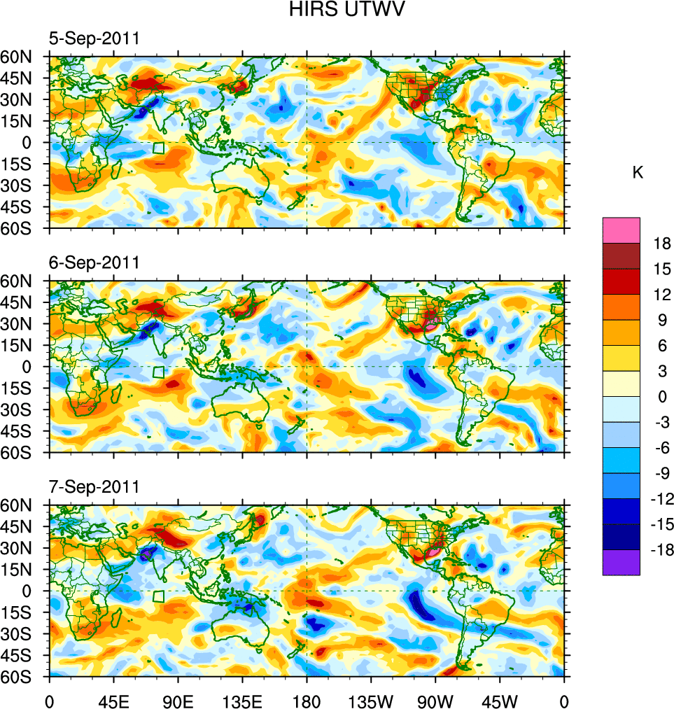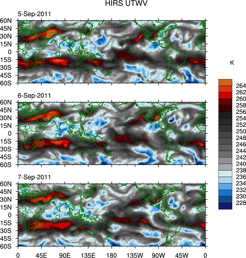 o   These brightness temperatures are observed with the HIRS sensor on the NOAA and MetOp polar-orbiting satellites.