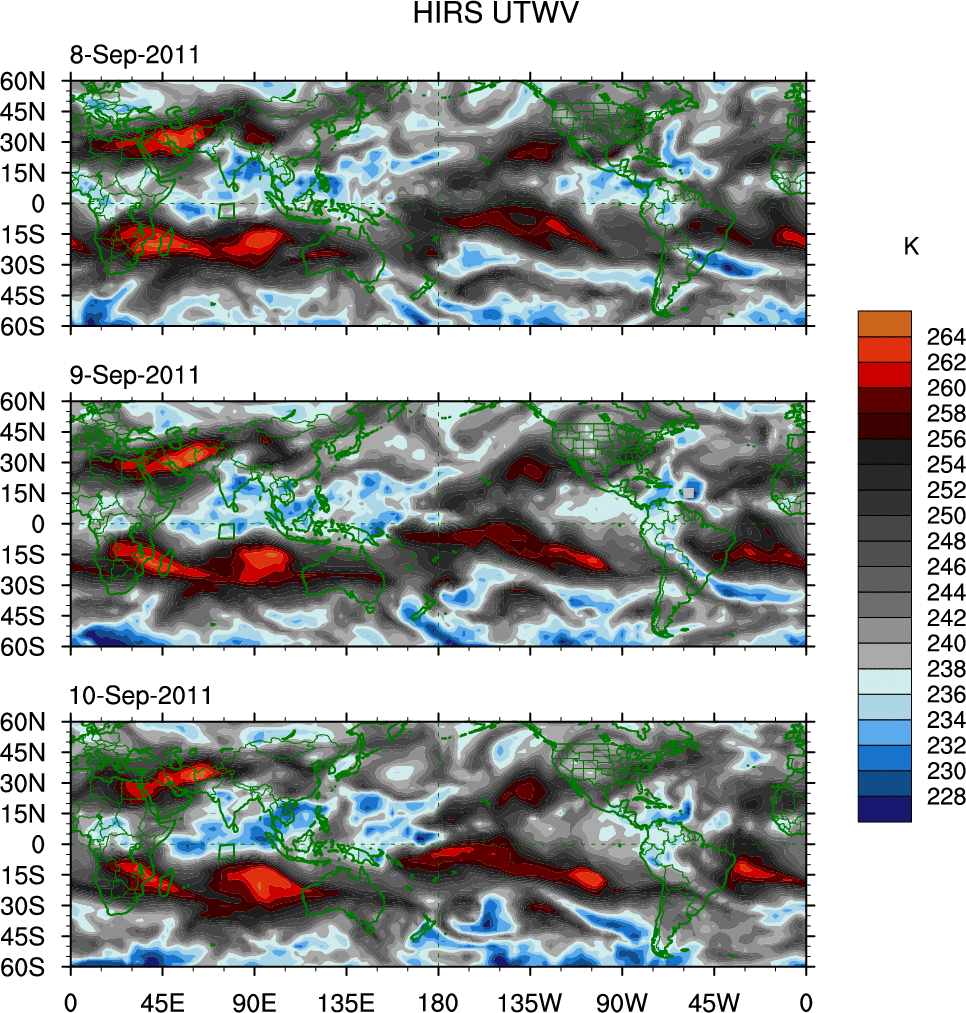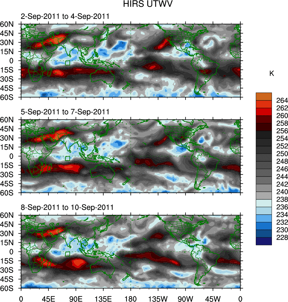 o   These brightness temperatures are observed with the HIRS sensor on the NOAA and MetOp polar-orbiting satellites.