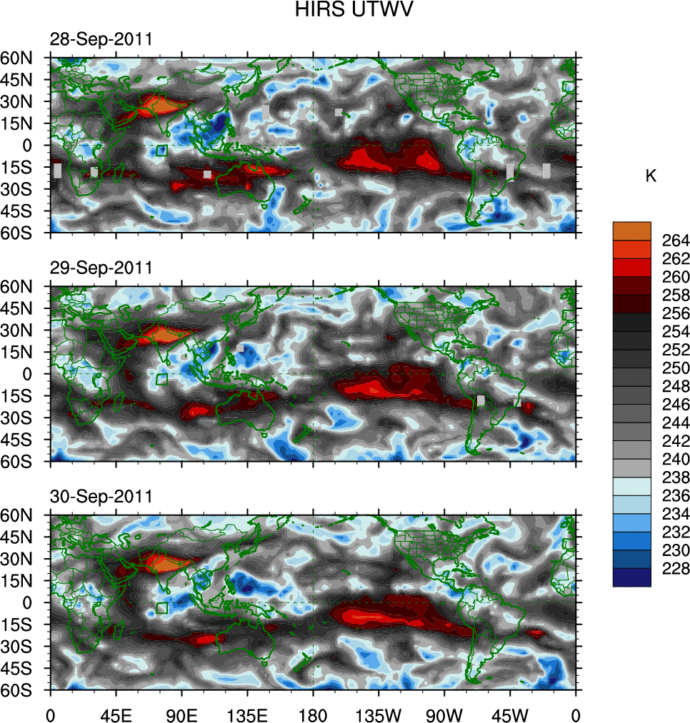 o   These brightness temperatures are observed with the HIRS sensor on the NOAA and MetOp polar-orbiting satellites.