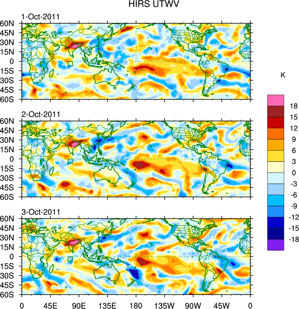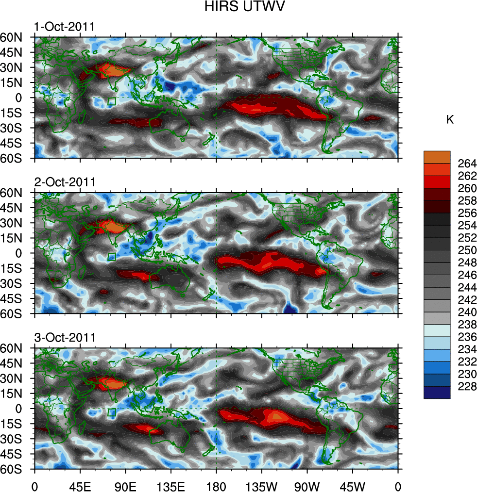 o   These brightness temperatures are observed with the HIRS sensor on the NOAA and MetOp polar-orbiting satellites.
