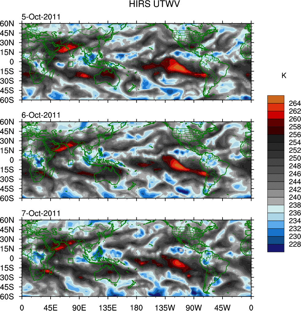 o   These brightness temperatures are observed with the HIRS sensor on the NOAA and MetOp polar-orbiting satellites.
