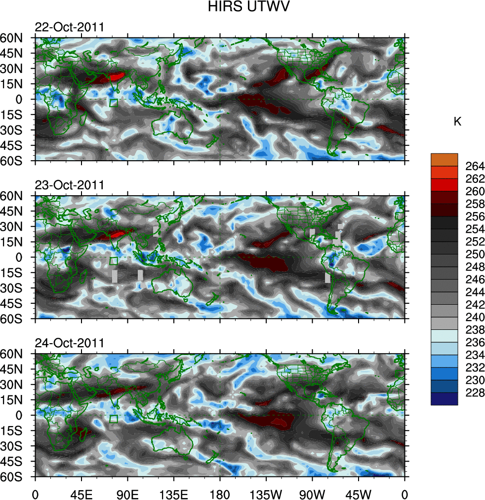 o   These brightness temperatures are observed with the HIRS sensor on the NOAA and MetOp polar-orbiting satellites.