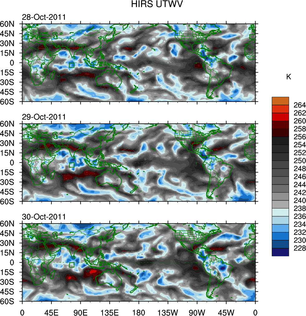 o   These brightness temperatures are observed with the HIRS sensor on the NOAA and MetOp polar-orbiting satellites.
