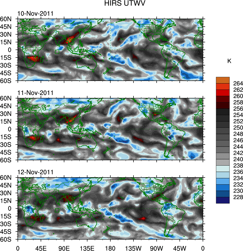 o   These brightness temperatures are observed with the HIRS sensor on the NOAA and MetOp polar-orbiting satellites.