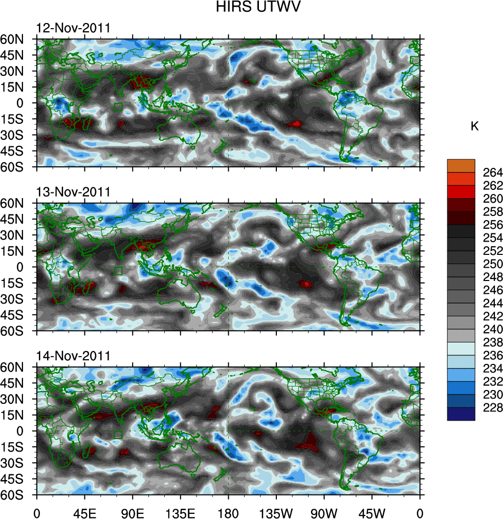 o   These brightness temperatures are observed with the HIRS sensor on the NOAA and MetOp polar-orbiting satellites.