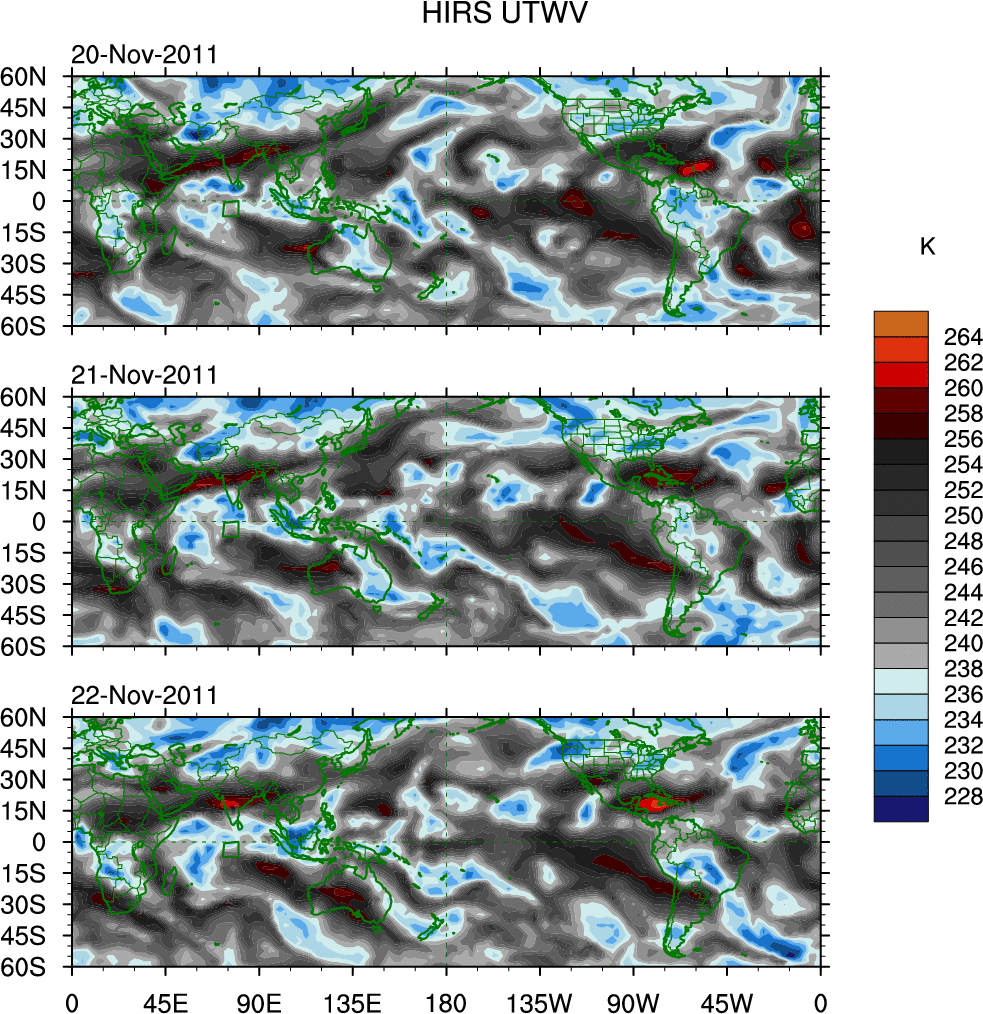 o   These brightness temperatures are observed with the HIRS sensor on the NOAA and MetOp polar-orbiting satellites.