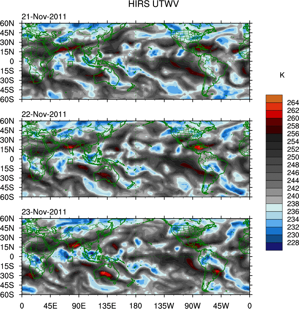 o   These brightness temperatures are observed with the HIRS sensor on the NOAA and MetOp polar-orbiting satellites.