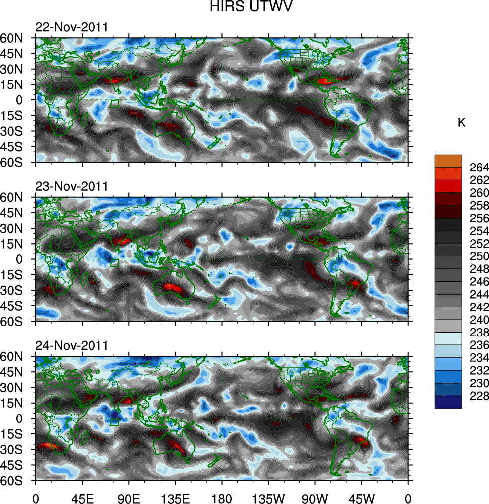 o   These brightness temperatures are observed with the HIRS sensor on the NOAA and MetOp polar-orbiting satellites.