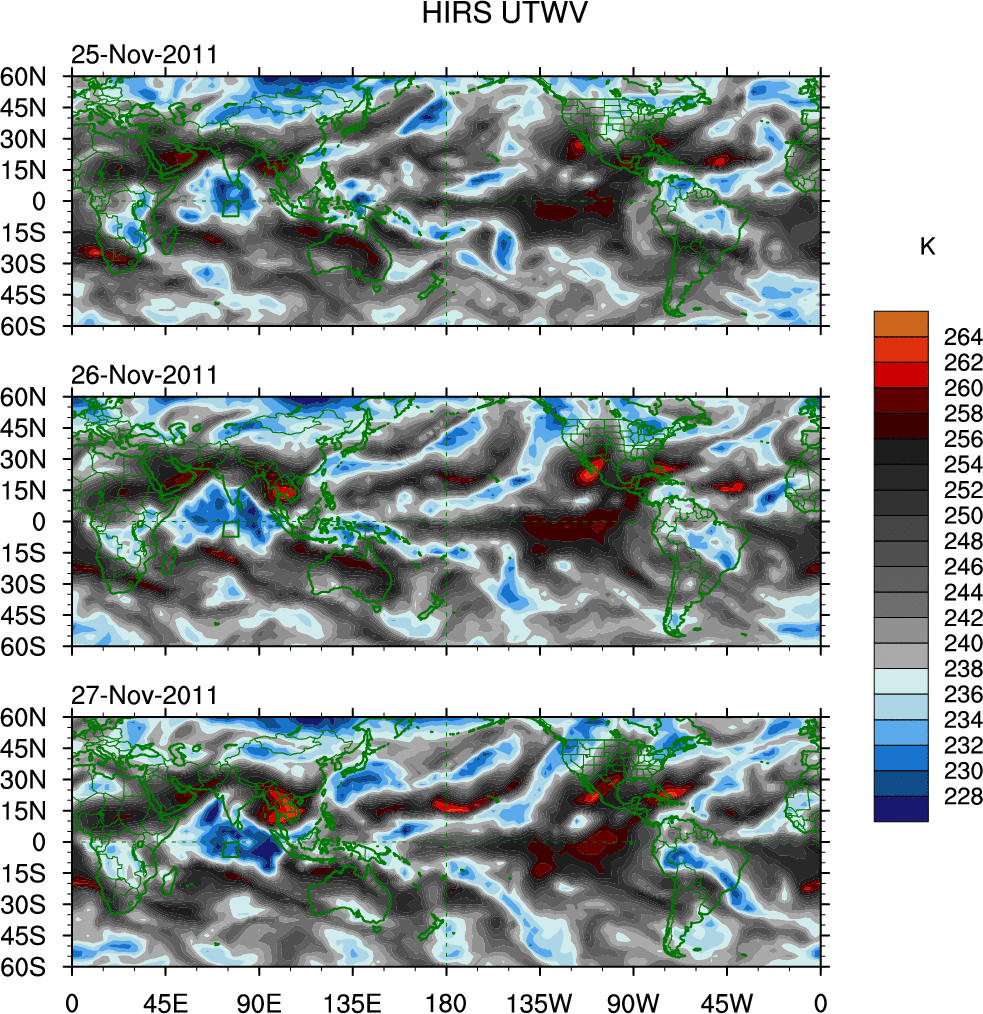 o   These brightness temperatures are observed with the HIRS sensor on the NOAA and MetOp polar-orbiting satellites.