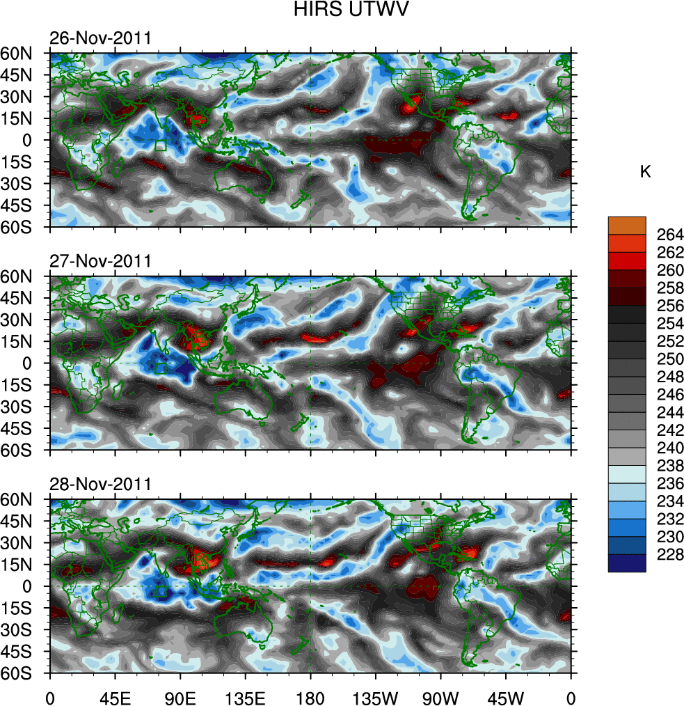 o   These brightness temperatures are observed with the HIRS sensor on the NOAA and MetOp polar-orbiting satellites.