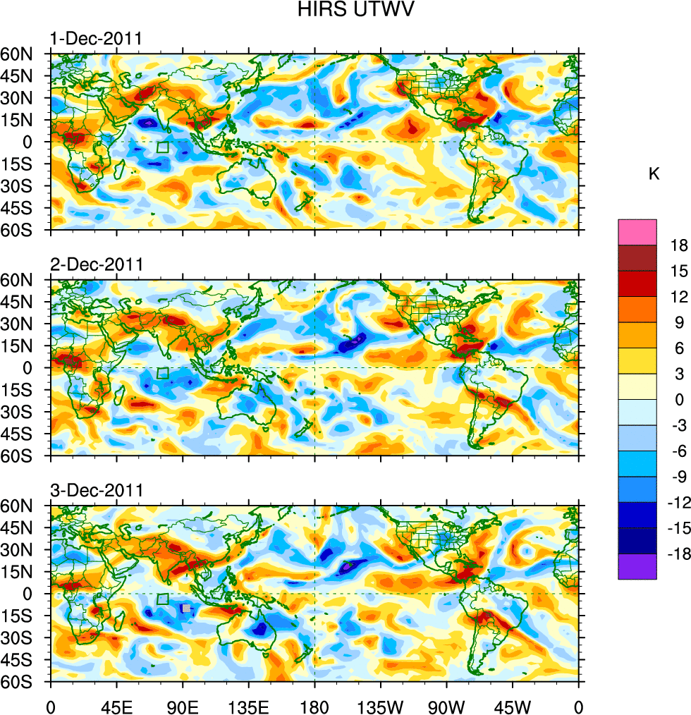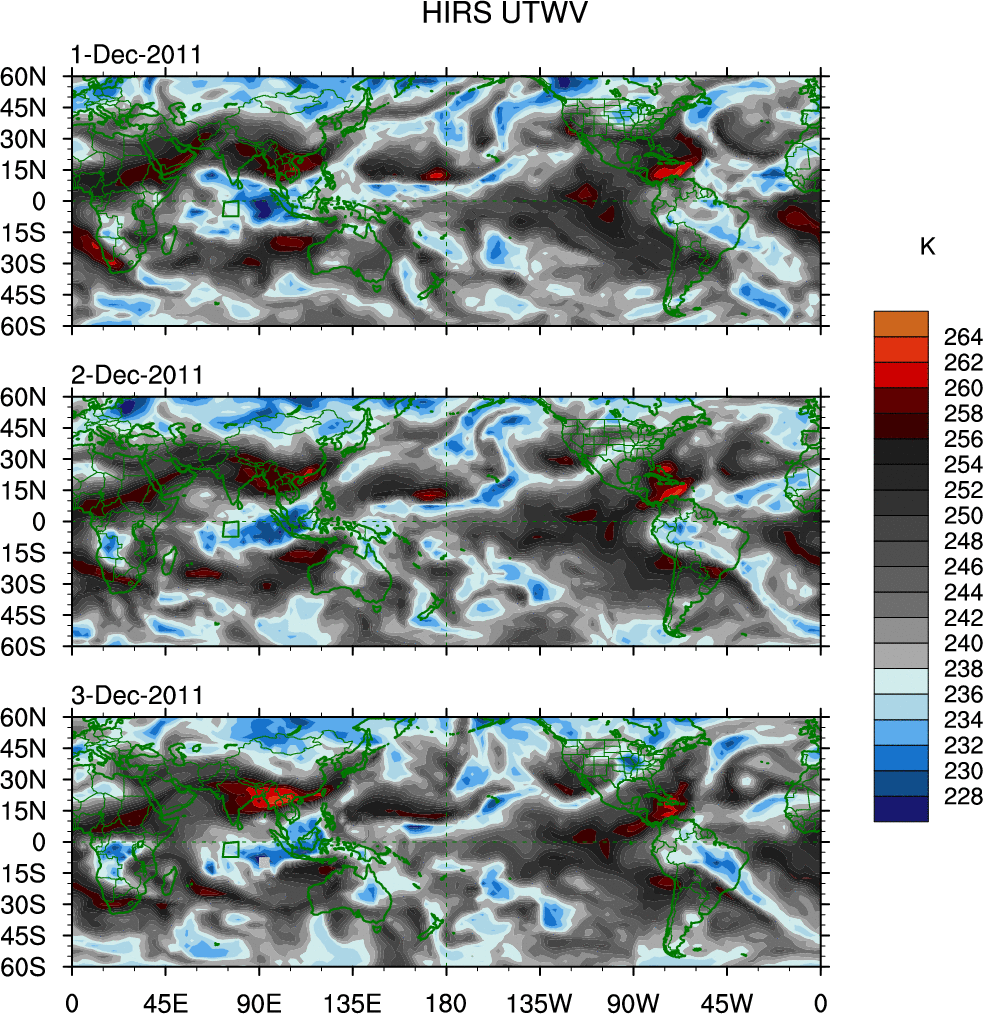 o   These brightness temperatures are observed with the HIRS sensor on the NOAA and MetOp polar-orbiting satellites.