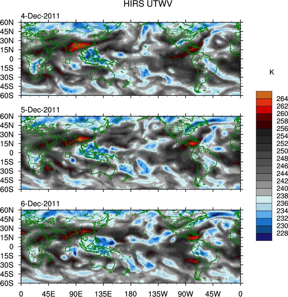 o   These brightness temperatures are observed with the HIRS sensor on the NOAA and MetOp polar-orbiting satellites.