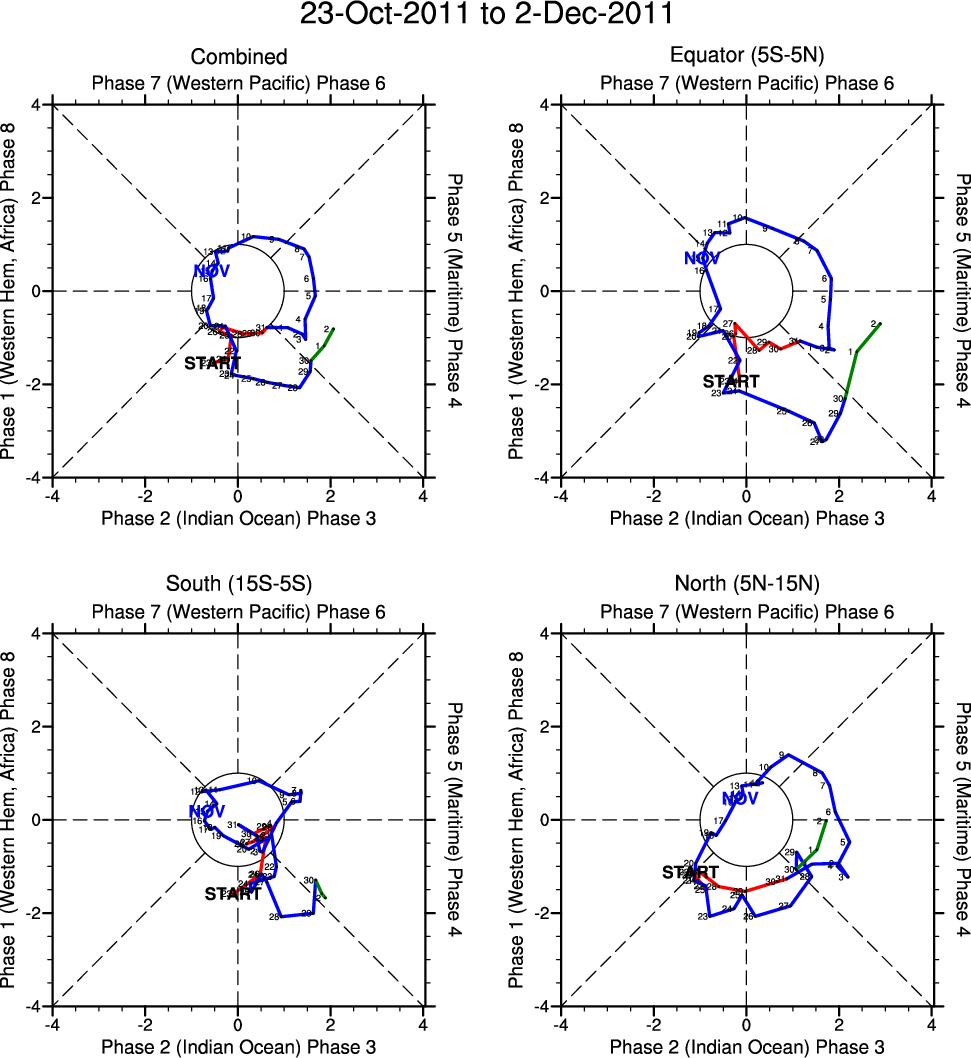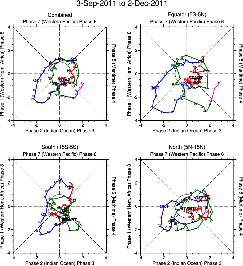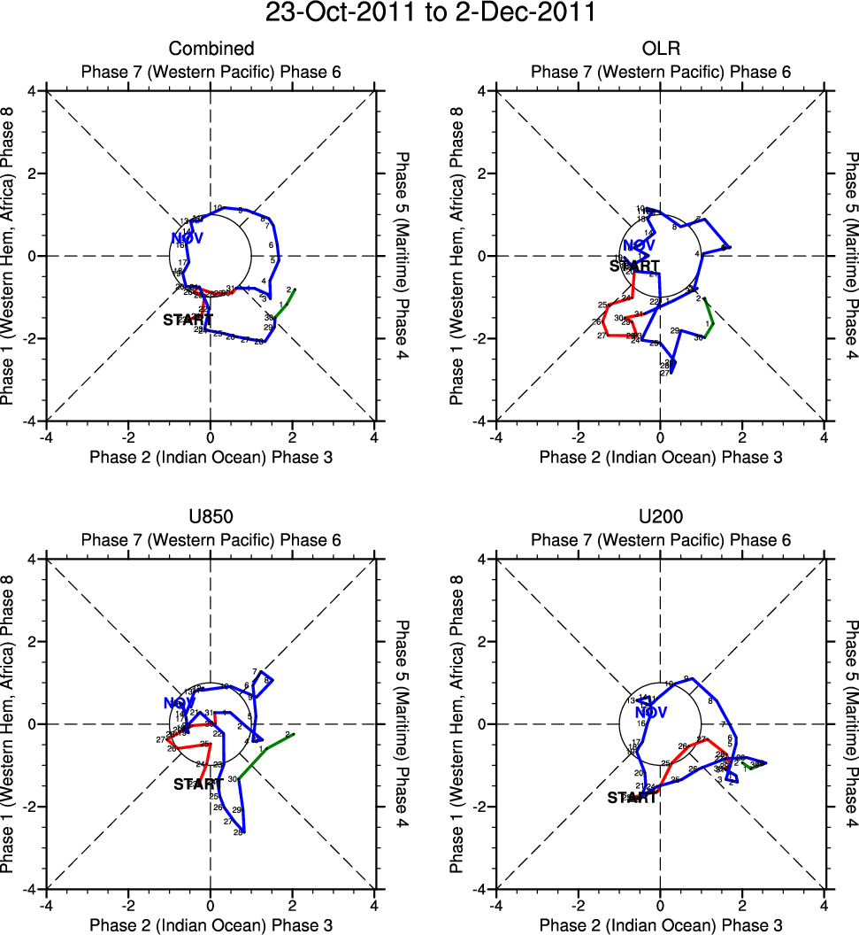 Wheeler and Hendon (2004) constructed the RMM index for monitoring the MJO. This index consists of the first two principal components (PCs) of OLR, 850-hPa zonal wind, and 200-hPa zonal wind averaged 15S-15N.