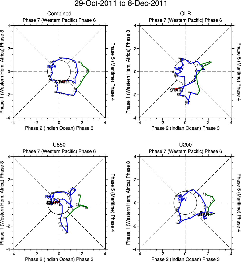 Wheeler and Hendon (2004) constructed the RMM index for monitoring the MJO. This index consists of the first two principal components (PCs) of OLR, 850-hPa zonal wind, and 200-hPa zonal wind averaged 15S-15N.