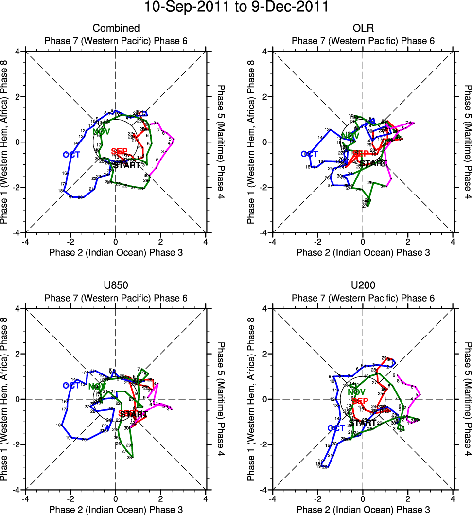 Wheeler and Hendon (2004) constructed the RMM index for monitoring the MJO. This index consists of the first two principal components (PCs) of OLR, 850-hPa zonal wind, and 200-hPa zonal wind averaged 15S-15N.