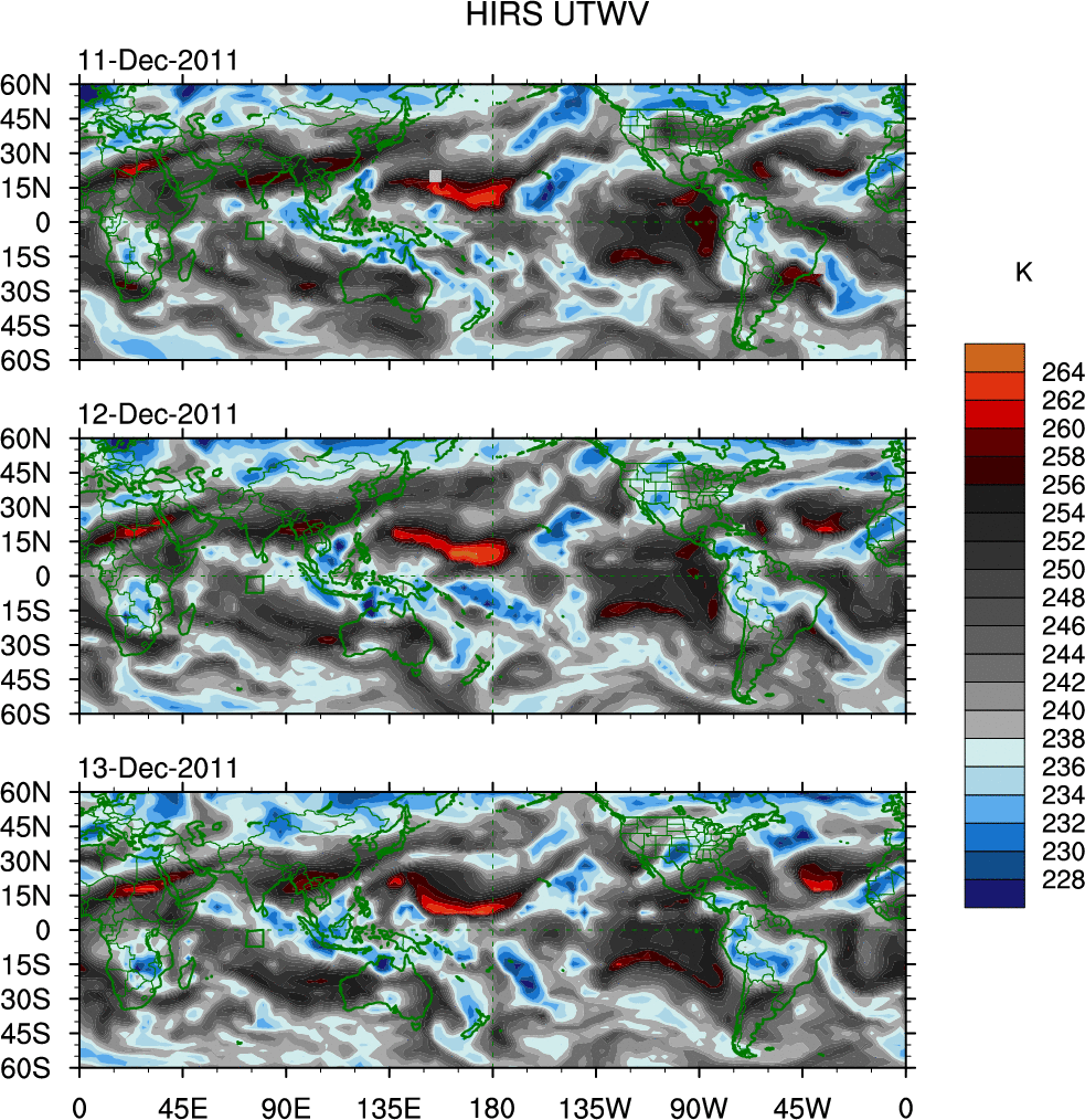o   These brightness temperatures are observed with the HIRS sensor on the NOAA and MetOp polar-orbiting satellites.