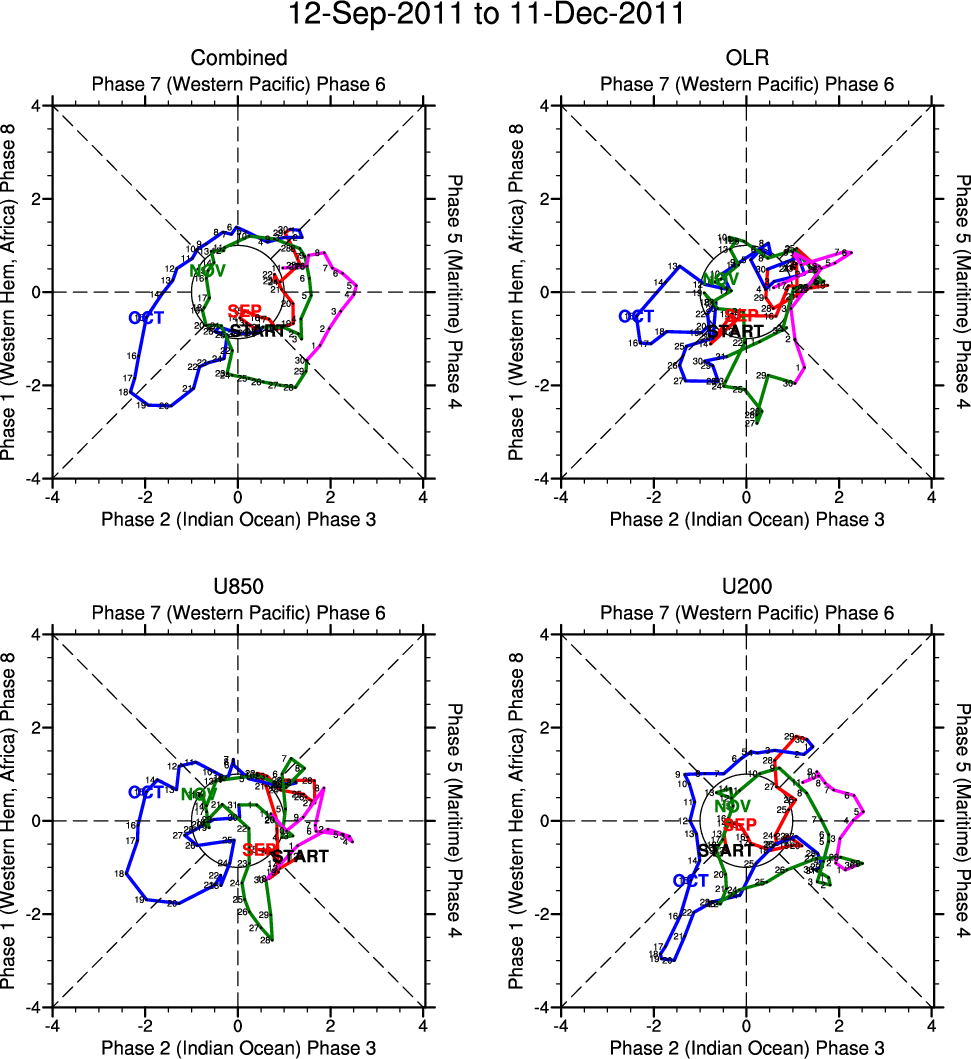 Wheeler and Hendon (2004) constructed the RMM index for monitoring the MJO. This index consists of the first two principal components (PCs) of OLR, 850-hPa zonal wind, and 200-hPa zonal wind averaged 15S-15N.