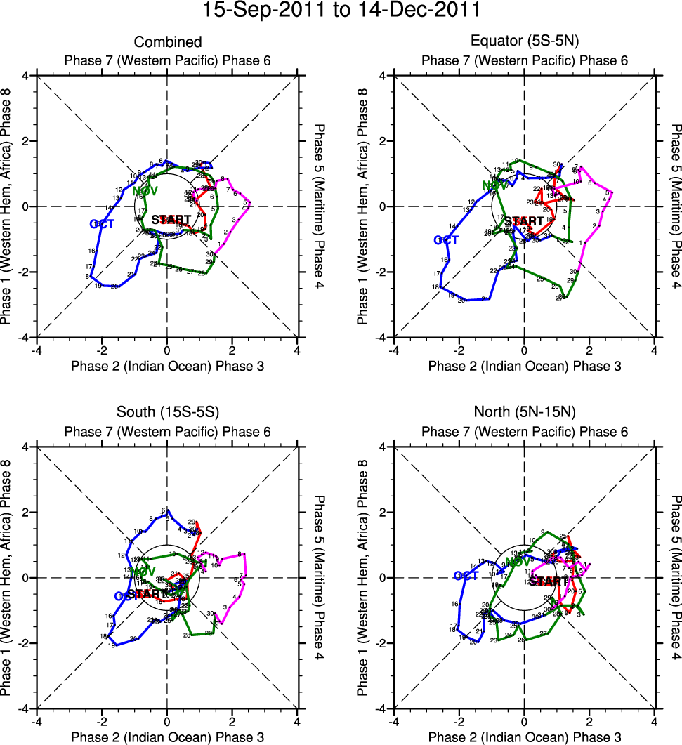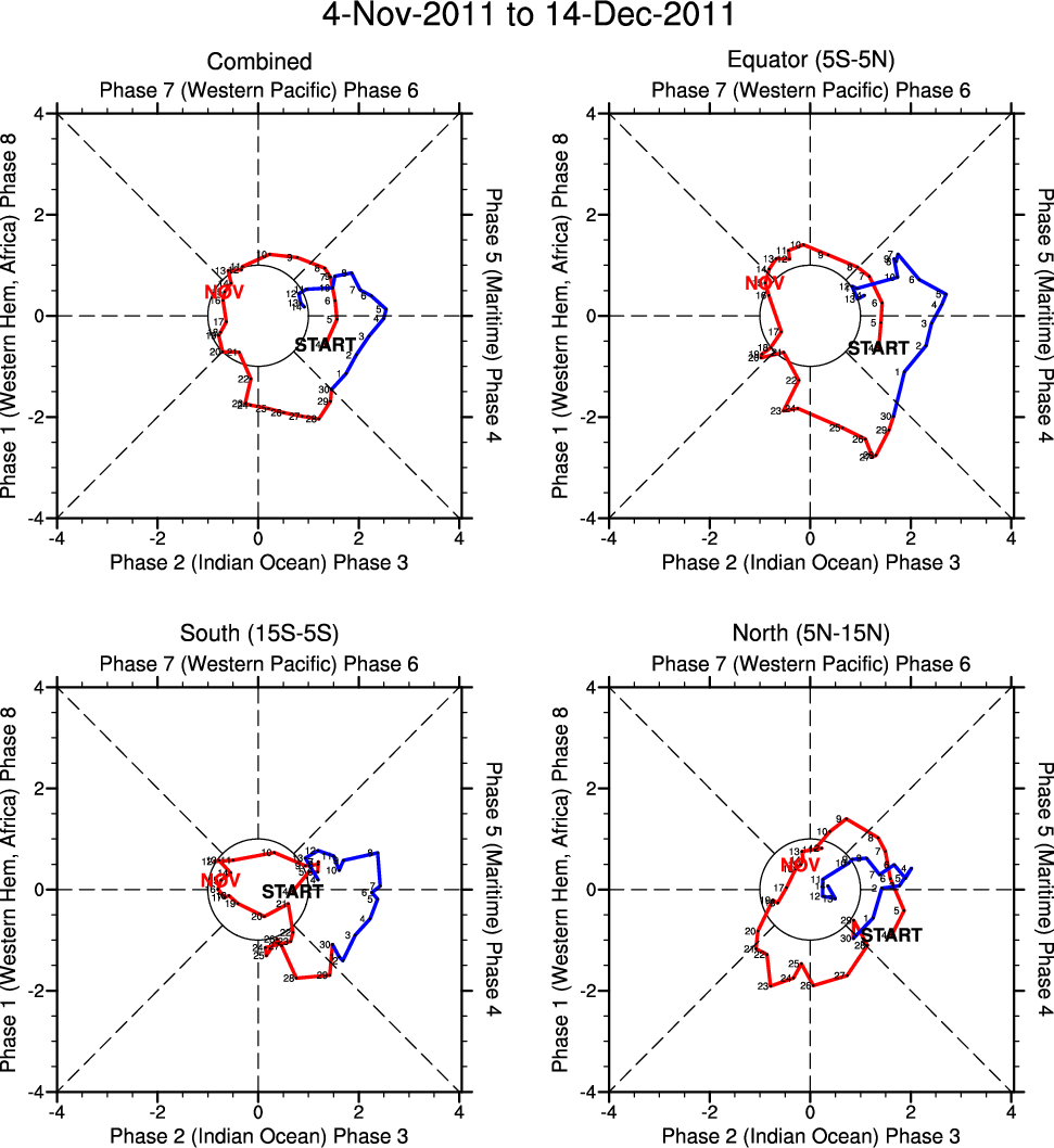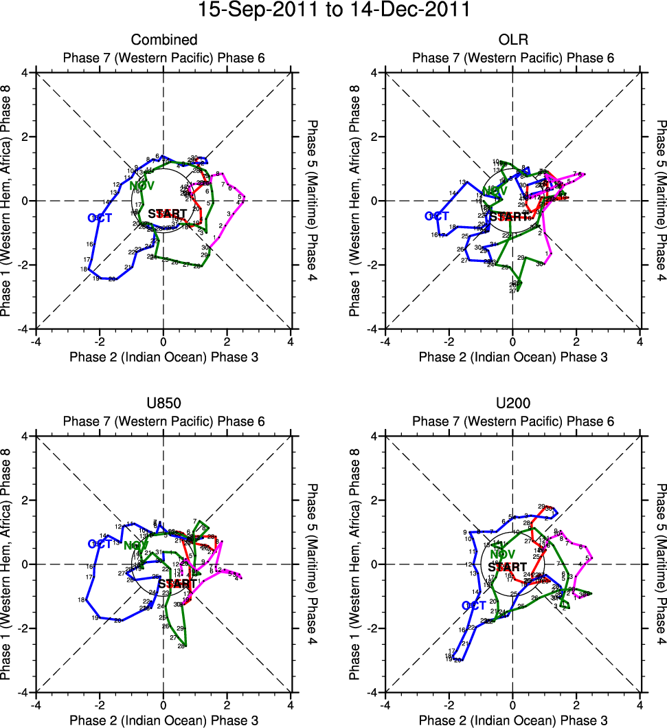 Wheeler and Hendon (2004) constructed the RMM index for monitoring the MJO. This index consists of the first two principal components (PCs) of OLR, 850-hPa zonal wind, and 200-hPa zonal wind averaged 15S-15N.