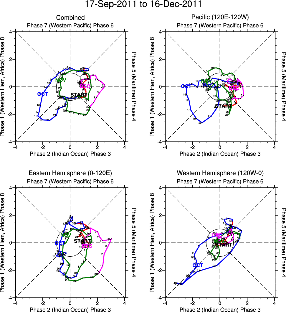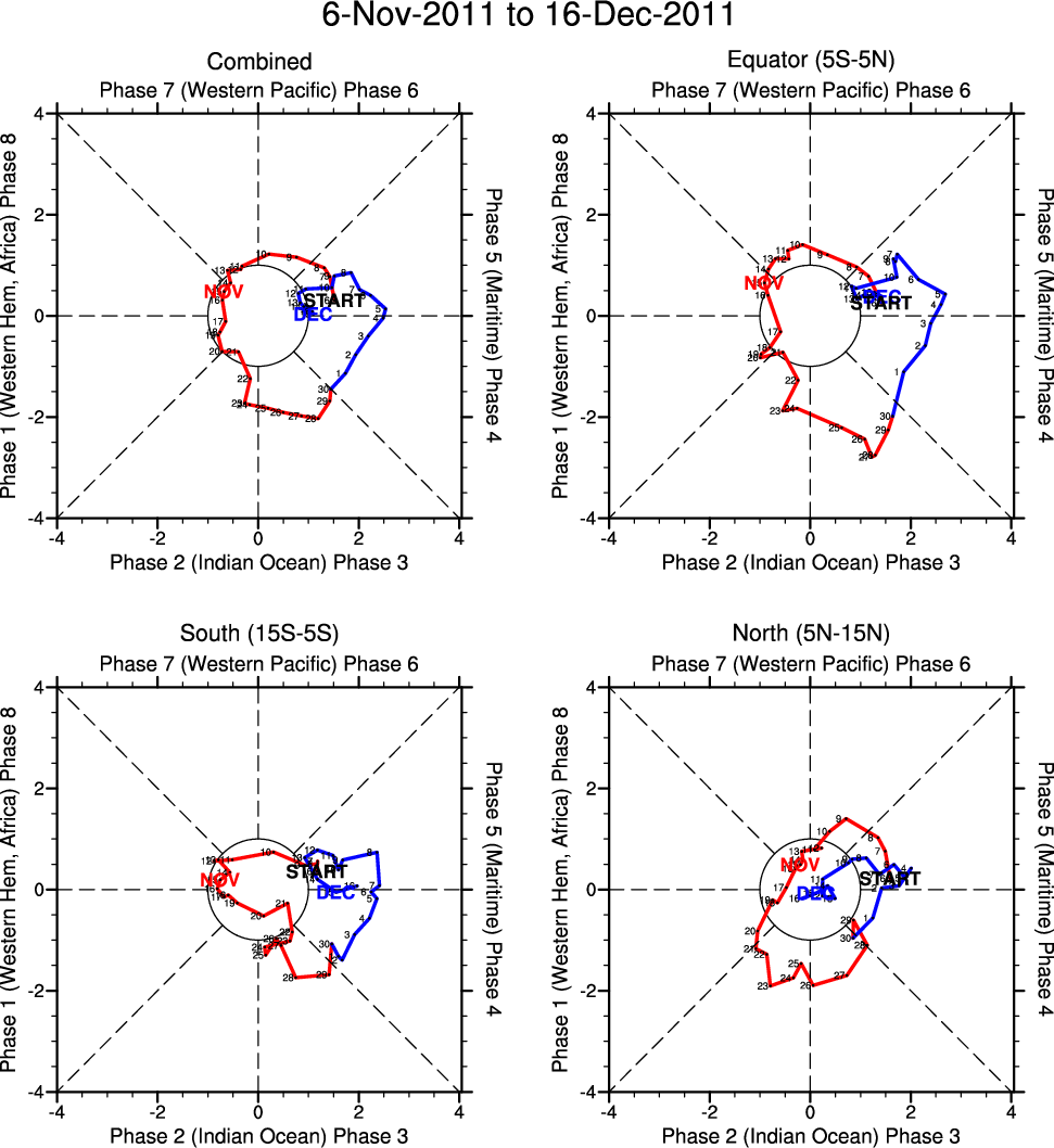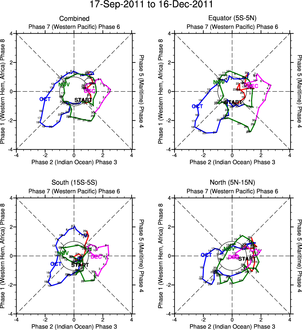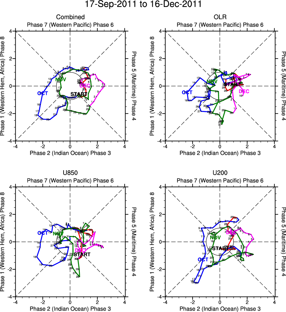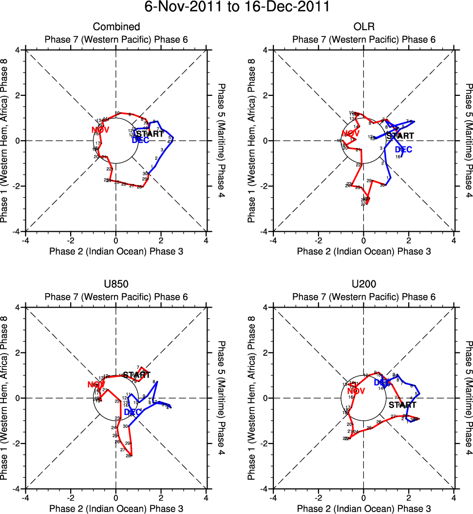 Wheeler and Hendon (2004) constructed the RMM index for monitoring the MJO. This index consists of the first two principal components (PCs) of OLR, 850-hPa zonal wind, and 200-hPa zonal wind averaged 15S-15N.