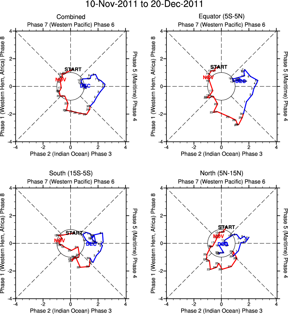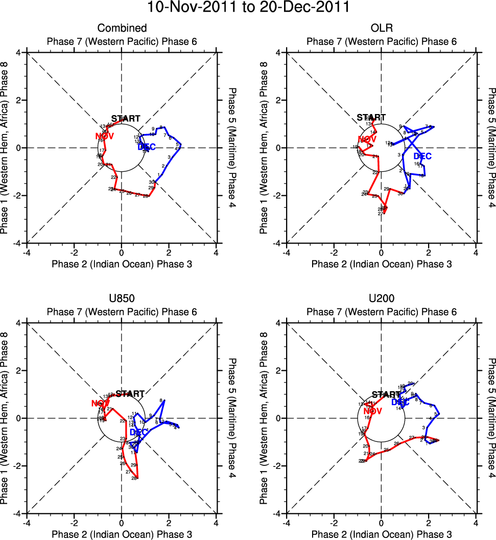 Wheeler and Hendon (2004) constructed the RMM index for monitoring the MJO. This index consists of the first two principal components (PCs) of OLR, 850-hPa zonal wind, and 200-hPa zonal wind averaged 15S-15N.