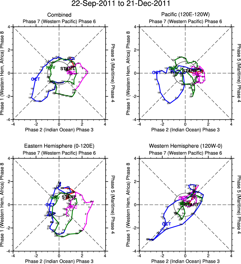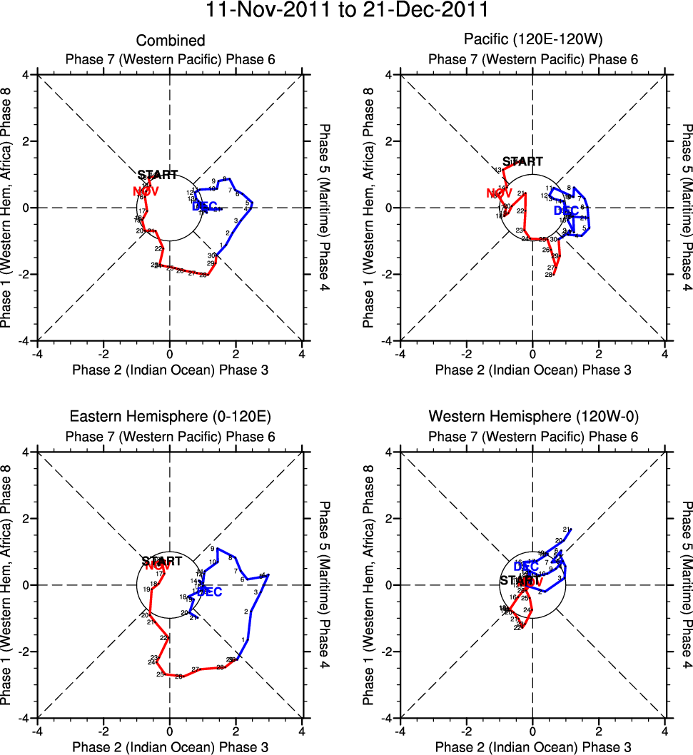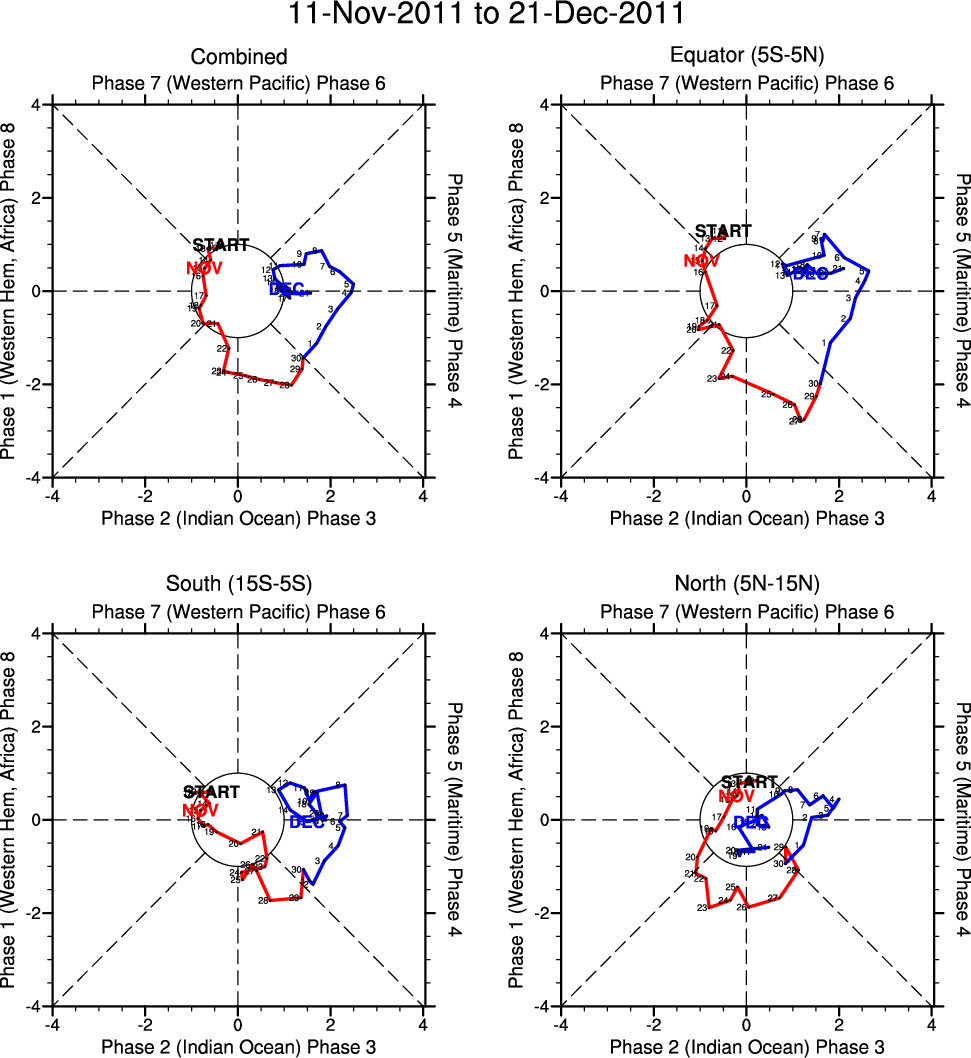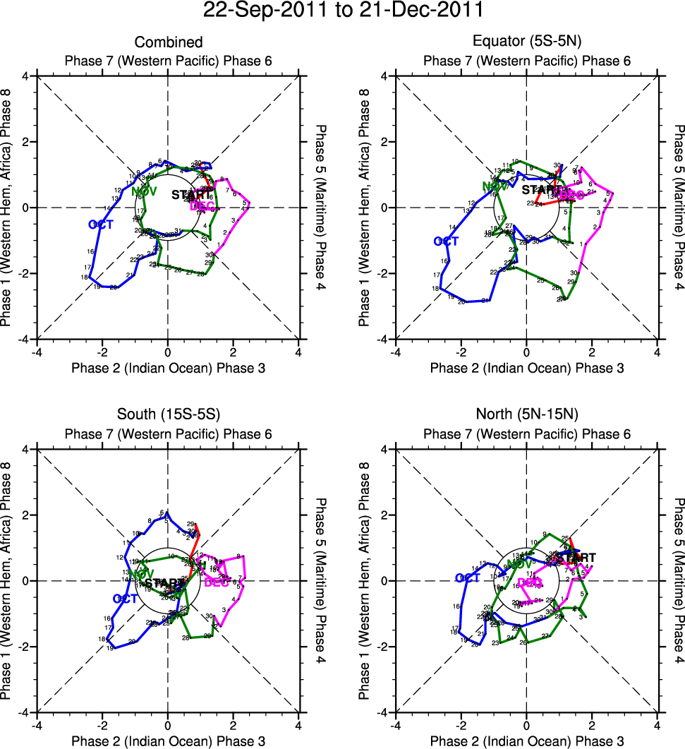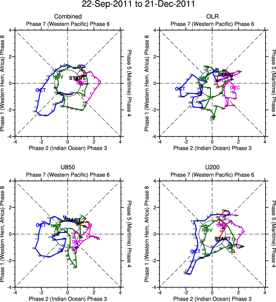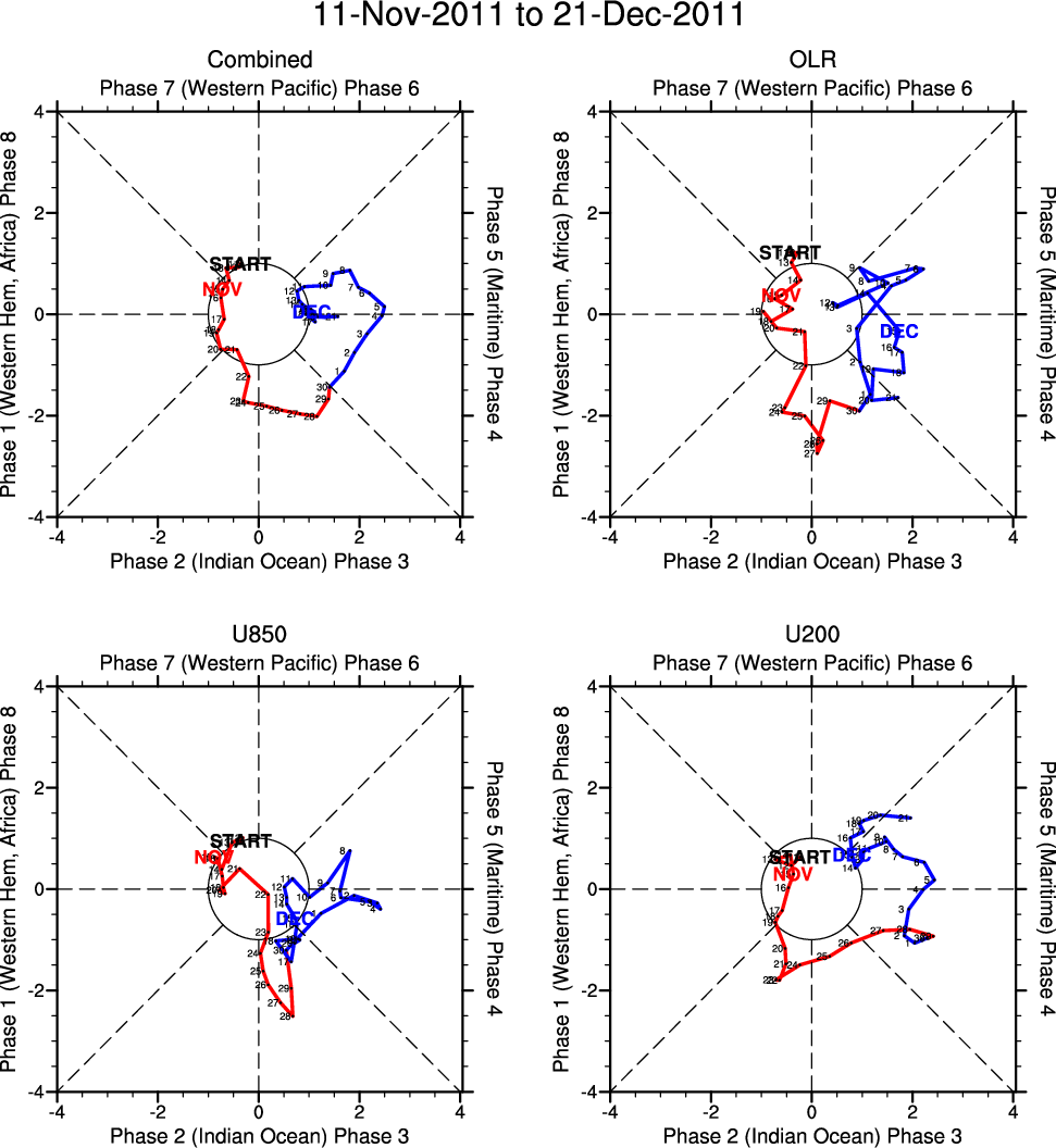 Wheeler and Hendon (2004) constructed the RMM index for monitoring the MJO. This index consists of the first two principal components (PCs) of OLR, 850-hPa zonal wind, and 200-hPa zonal wind averaged 15S-15N.