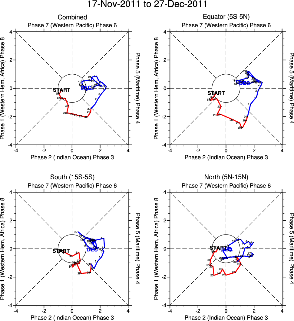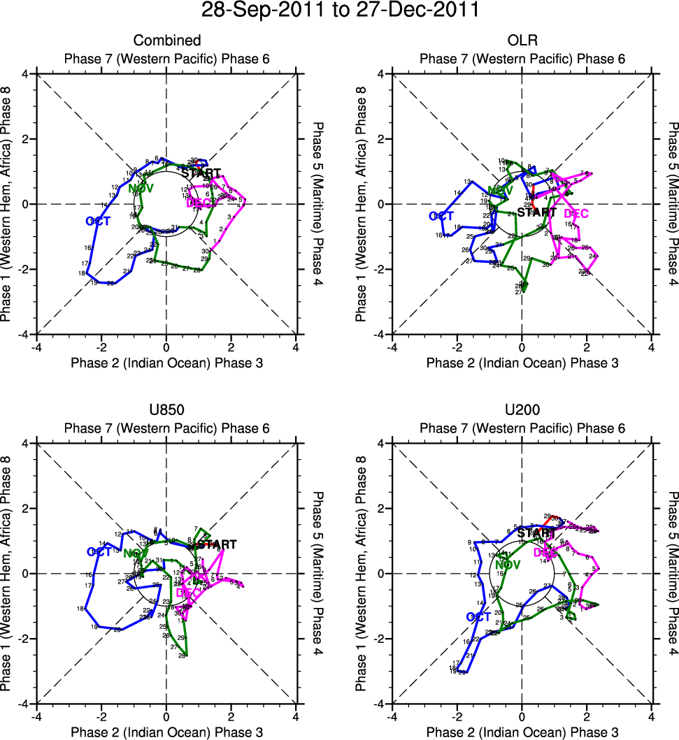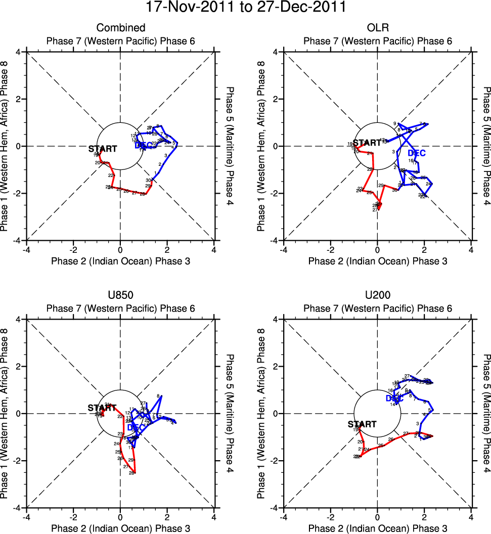 Wheeler and Hendon (2004) constructed the RMM index for monitoring the MJO. This index consists of the first two principal components (PCs) of OLR, 850-hPa zonal wind, and 200-hPa zonal wind averaged 15S-15N.