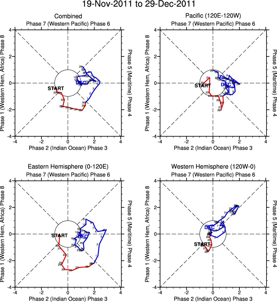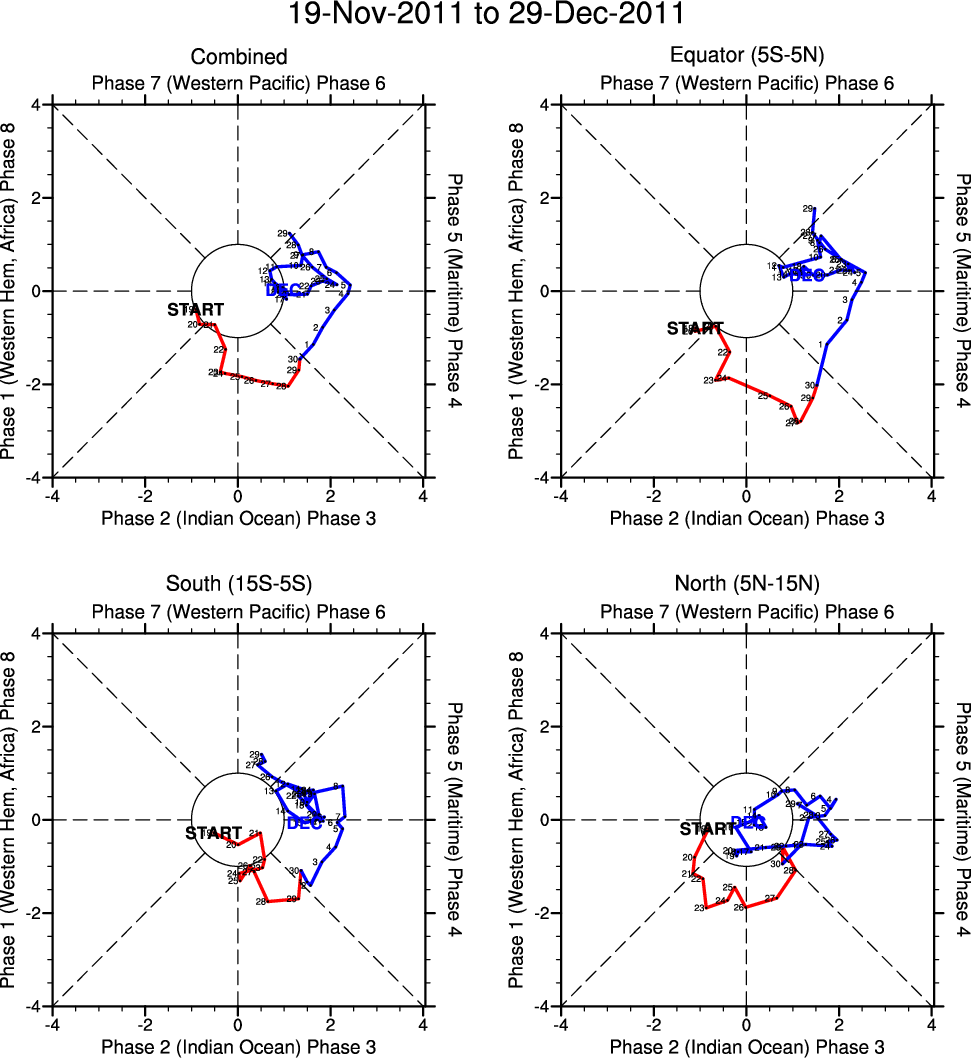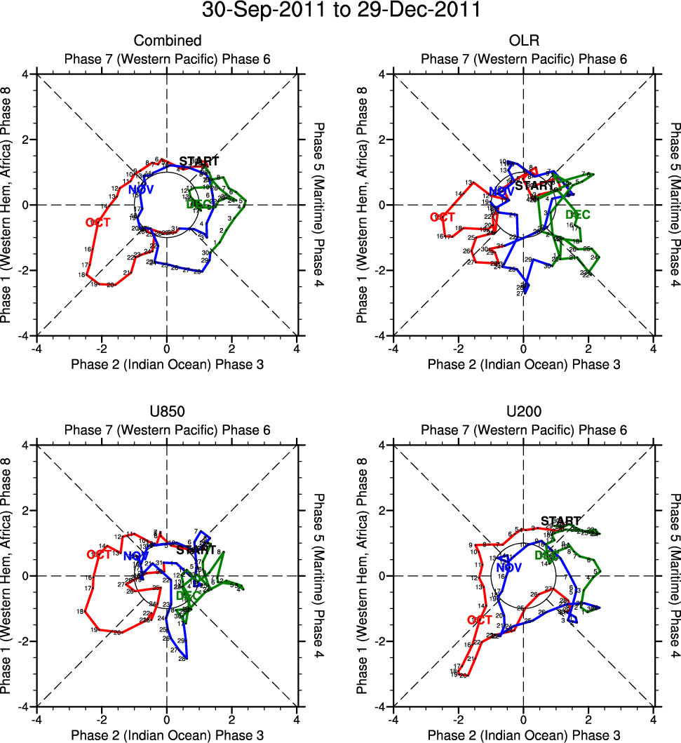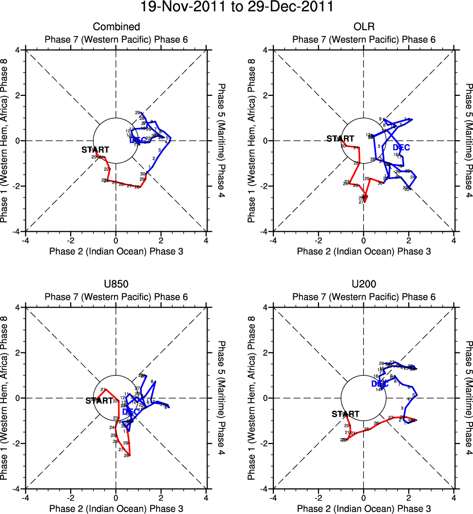 Wheeler and Hendon (2004) constructed the RMM index for monitoring the MJO. This index consists of the first two principal components (PCs) of OLR, 850-hPa zonal wind, and 200-hPa zonal wind averaged 15S-15N.
