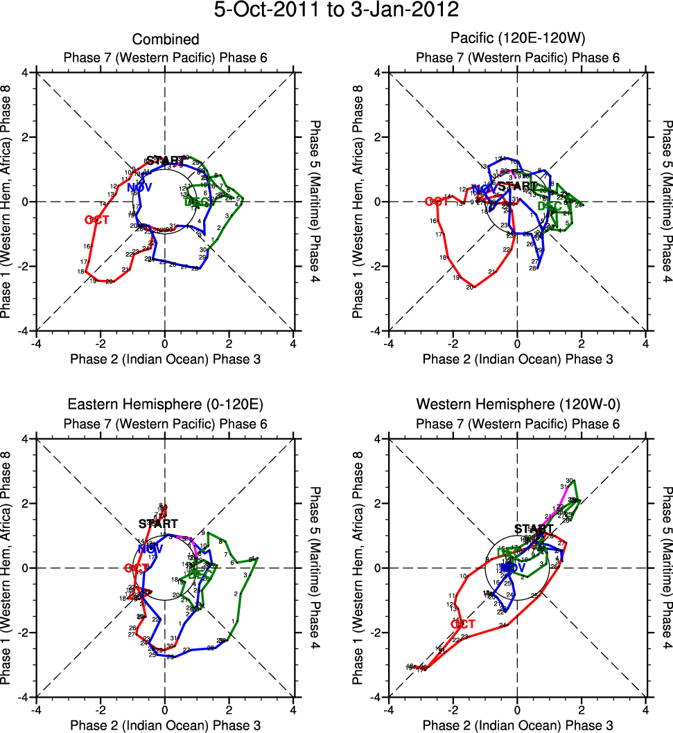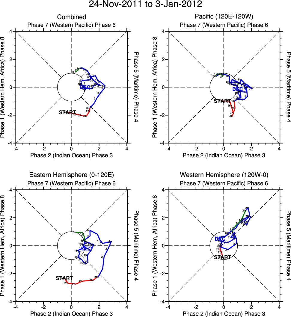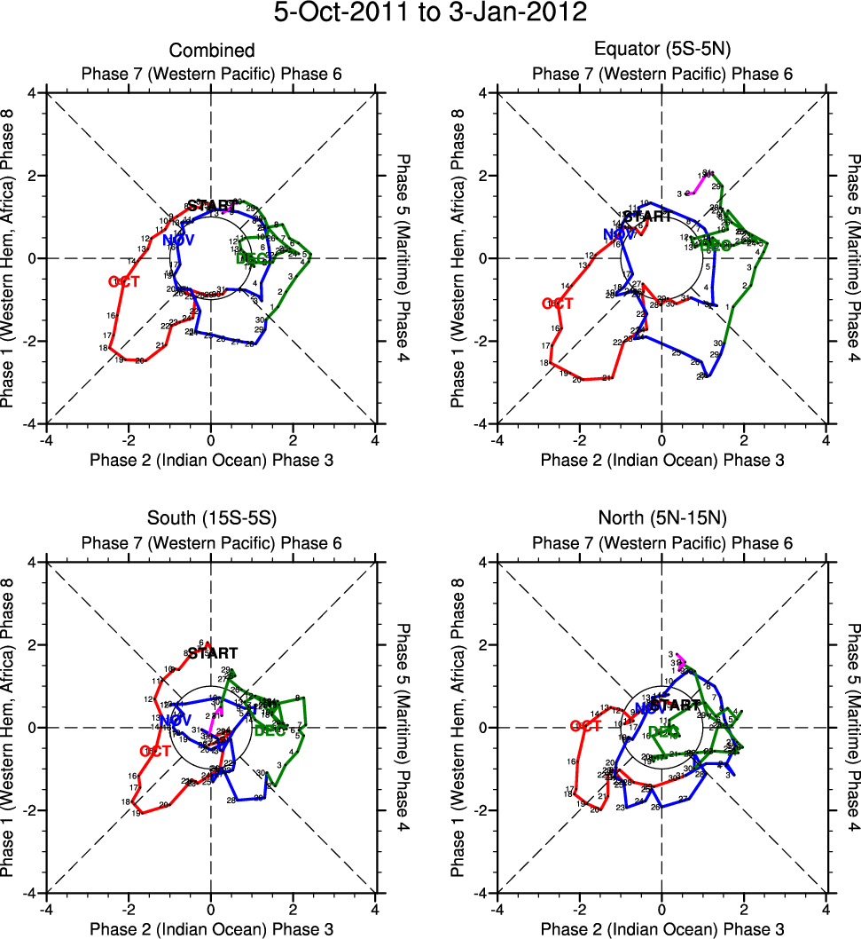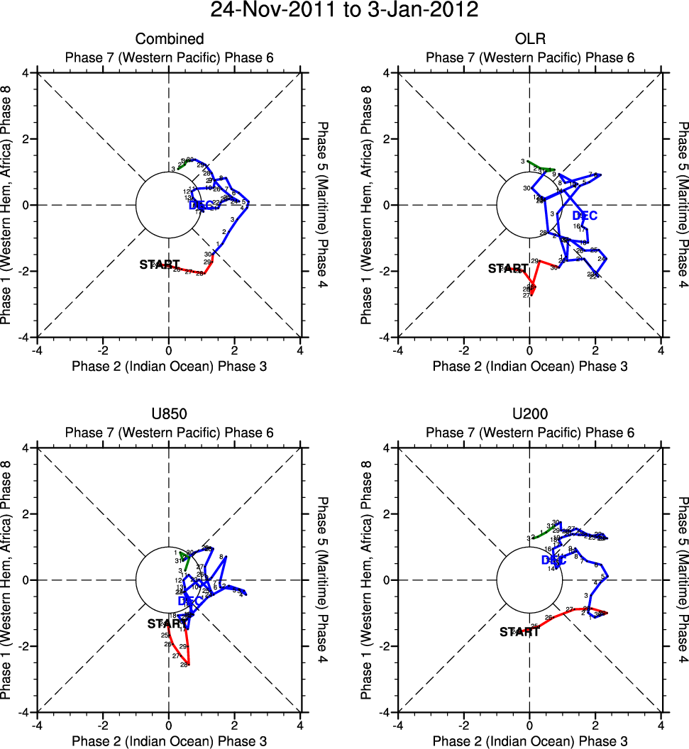 Wheeler and Hendon (2004) constructed the RMM index for monitoring the MJO. This index consists of the first two principal components (PCs) of OLR, 850-hPa zonal wind, and 200-hPa zonal wind averaged 15S-15N.