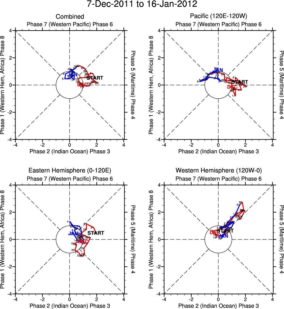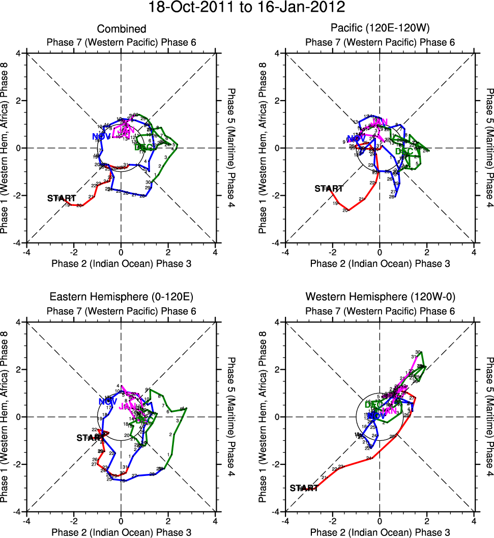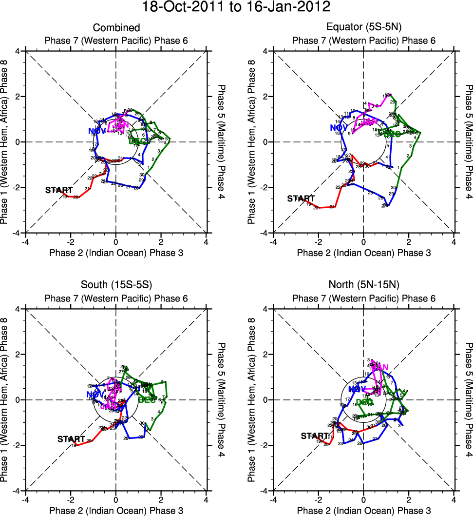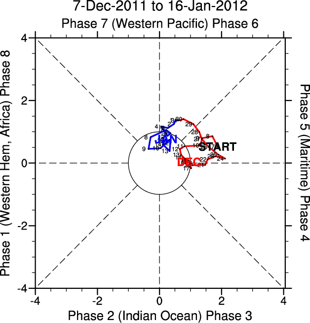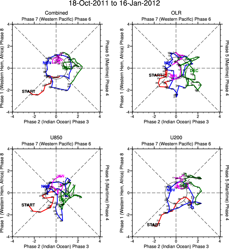 Wheeler and Hendon (2004) constructed the RMM index for monitoring the MJO. This index consists of the first two principal components (PCs) of OLR, 850-hPa zonal wind, and 200-hPa zonal wind averaged 15S-15N.