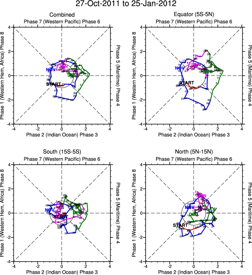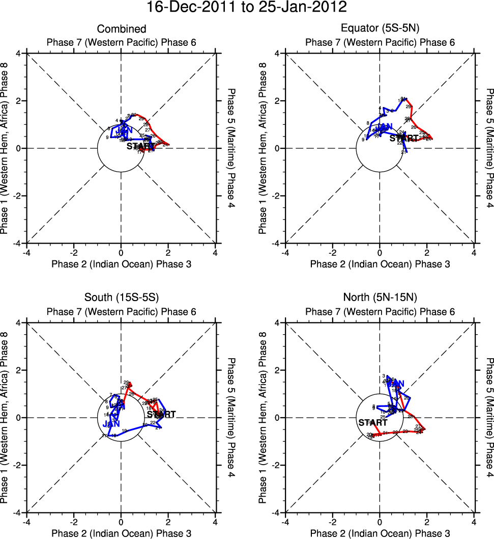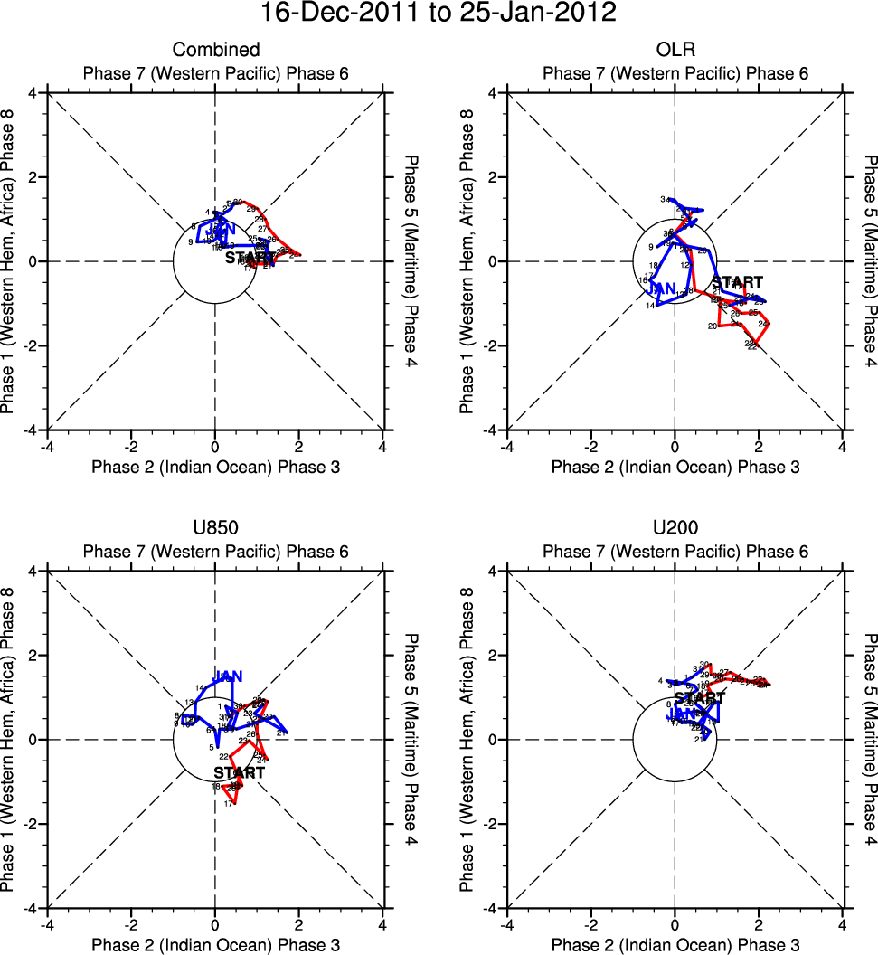 Wheeler and Hendon (2004) constructed the RMM index for monitoring the MJO. This index consists of the first two principal components (PCs) of OLR, 850-hPa zonal wind, and 200-hPa zonal wind averaged 15S-15N.