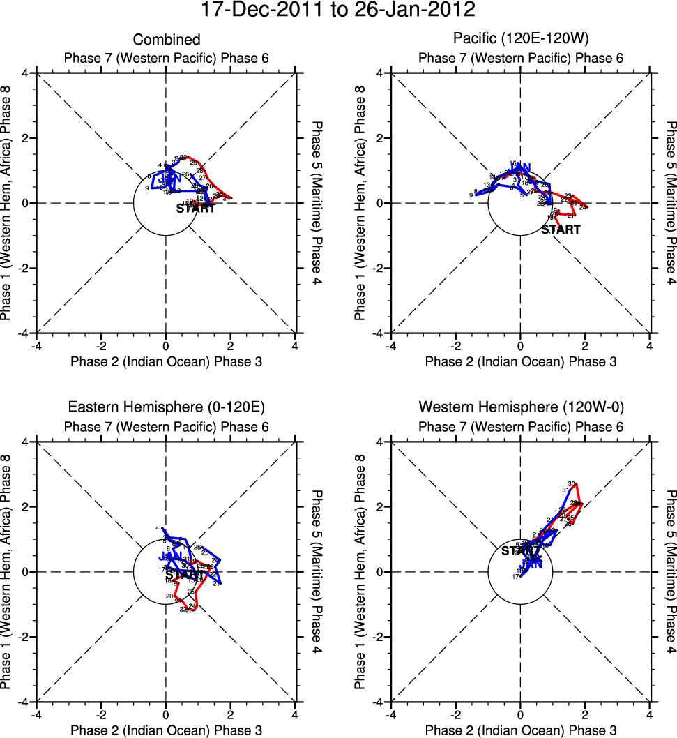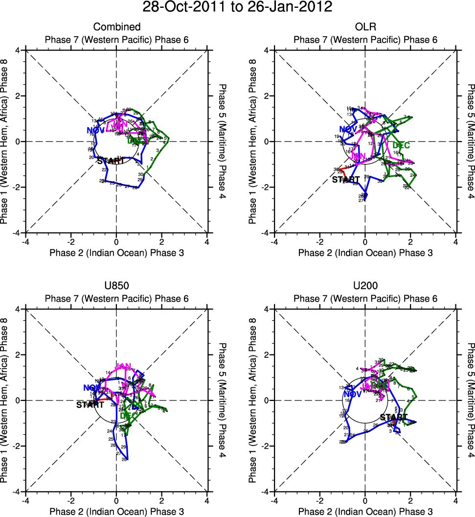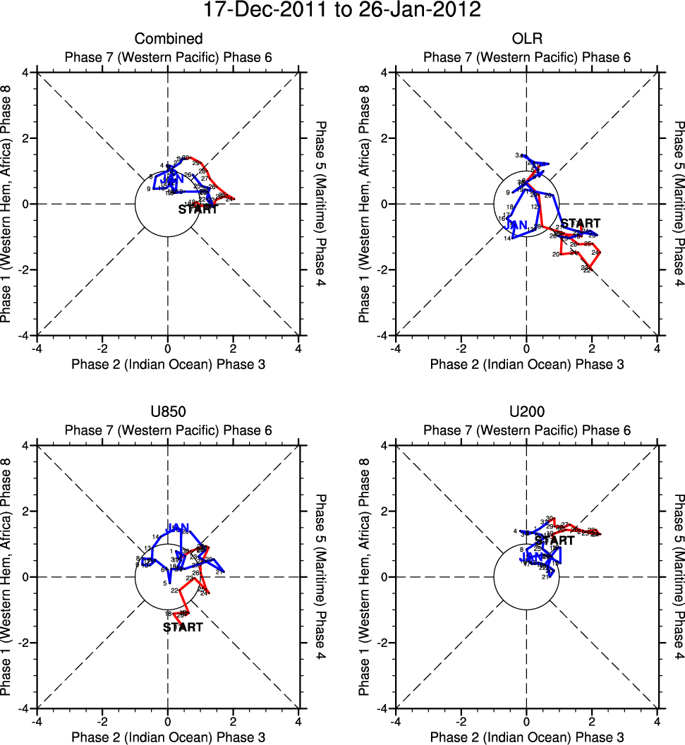 Wheeler and Hendon (2004) constructed the RMM index for monitoring the MJO. This index consists of the first two principal components (PCs) of OLR, 850-hPa zonal wind, and 200-hPa zonal wind averaged 15S-15N.