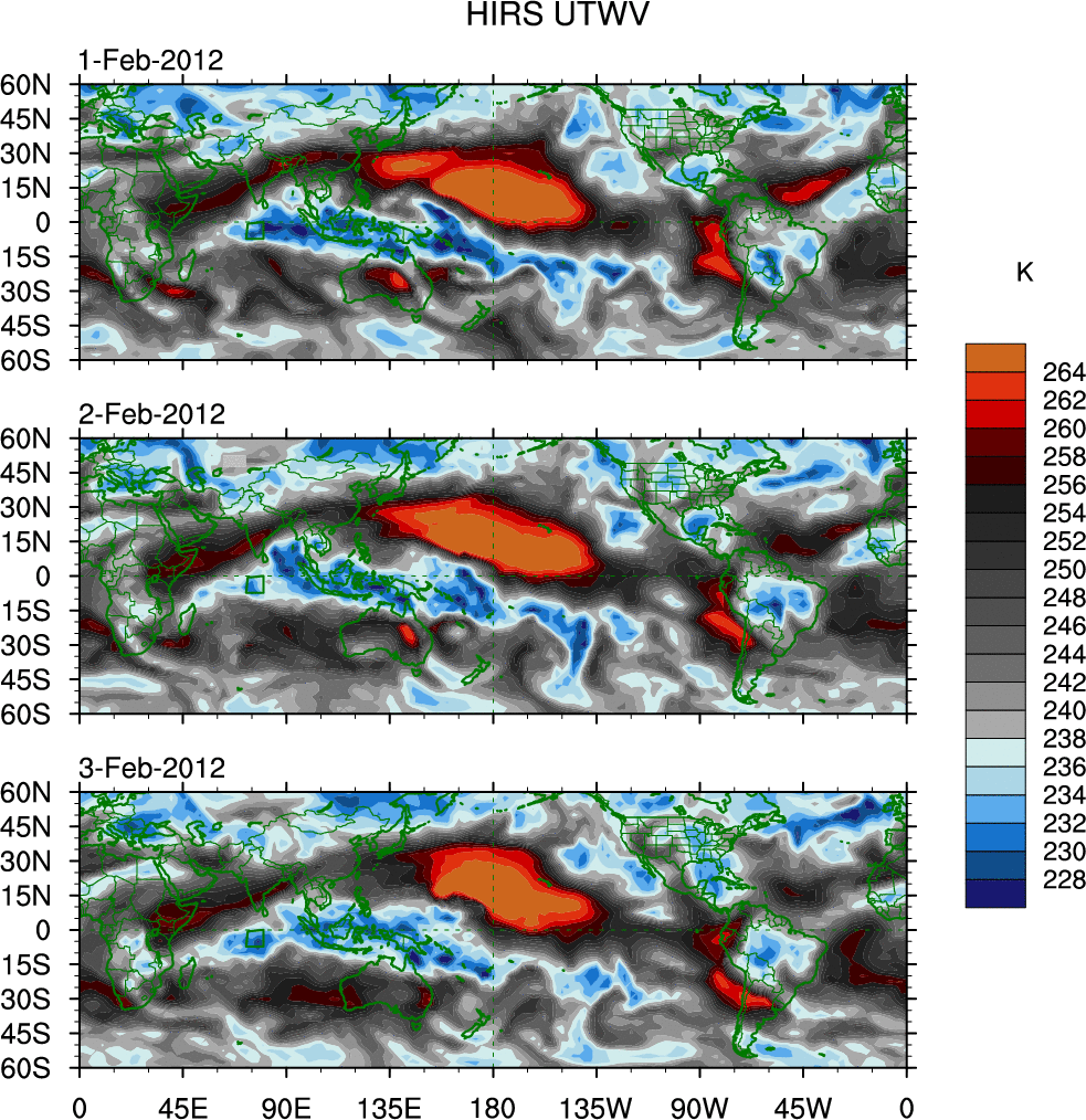 o   These brightness temperatures are observed with the HIRS sensor on the NOAA and MetOp polar-orbiting satellites.
