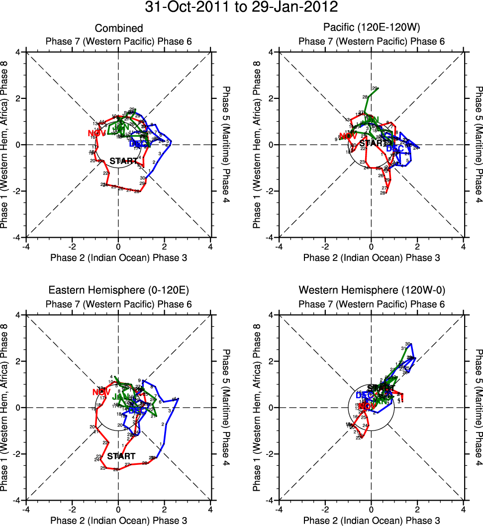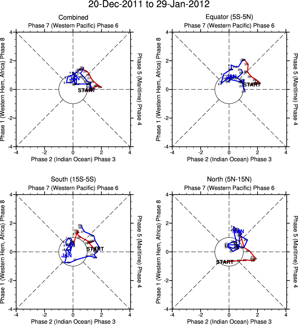 Wheeler and Hendon (2004) constructed the RMM index for monitoring the MJO. This index consists of the first two principal components (PCs) of OLR, 850-hPa zonal wind, and 200-hPa zonal wind averaged 15S-15N.