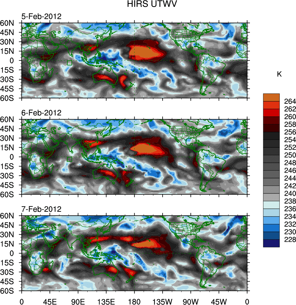 o   These brightness temperatures are observed with the HIRS sensor on the NOAA and MetOp polar-orbiting satellites.