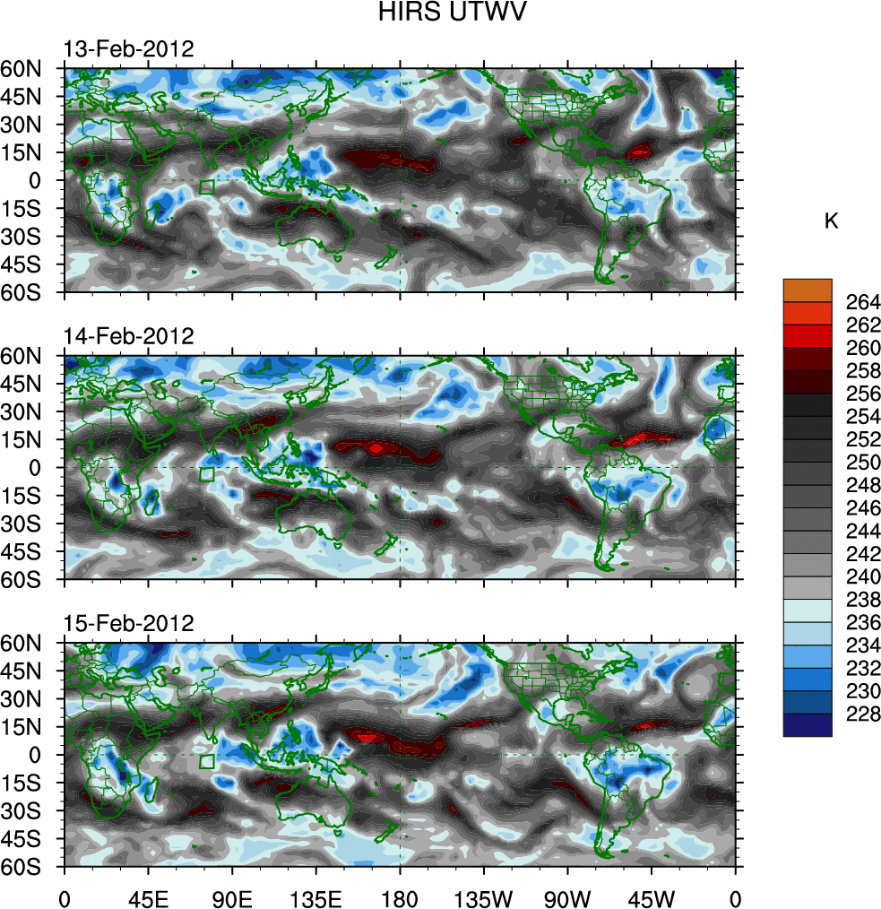 o   These brightness temperatures are observed with the HIRS sensor on the NOAA and MetOp polar-orbiting satellites.