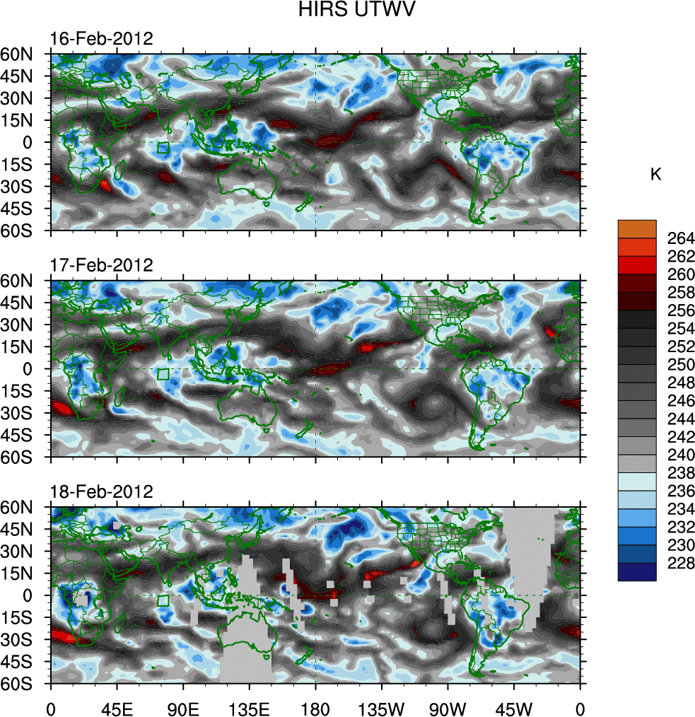 o   These brightness temperatures are observed with the HIRS sensor on the NOAA and MetOp polar-orbiting satellites.