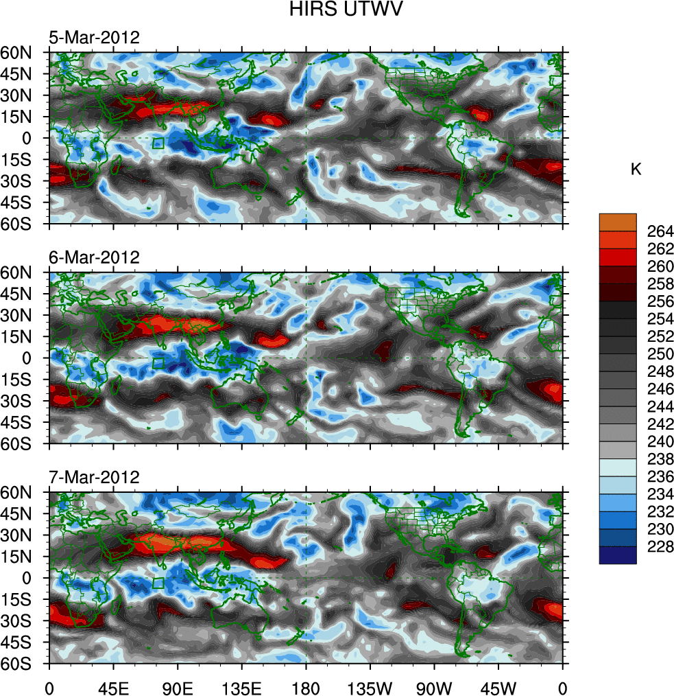 o   These brightness temperatures are observed with the HIRS sensor on the NOAA and MetOp polar-orbiting satellites.