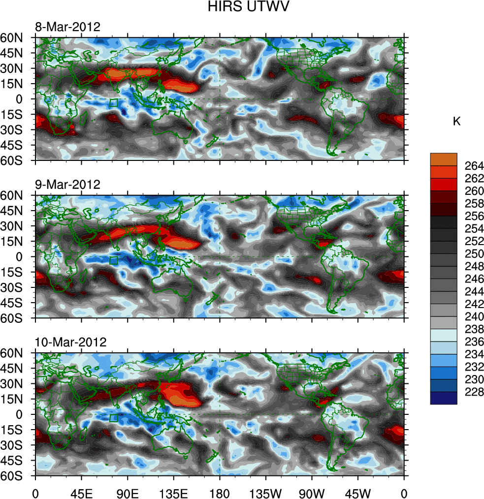 o   These brightness temperatures are observed with the HIRS sensor on the NOAA and MetOp polar-orbiting satellites.