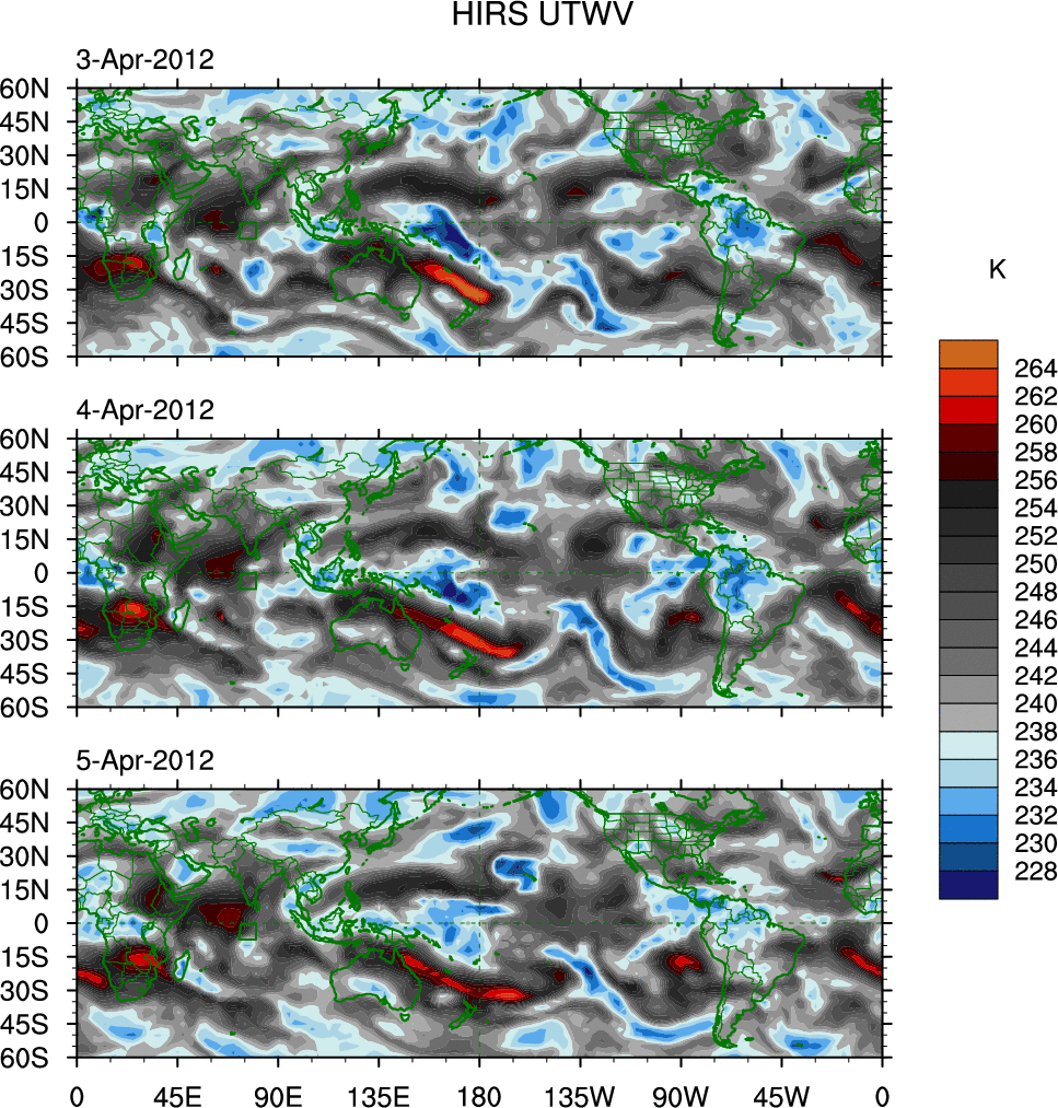 o   These brightness temperatures are observed with the HIRS sensor on the NOAA and MetOp polar-orbiting satellites.