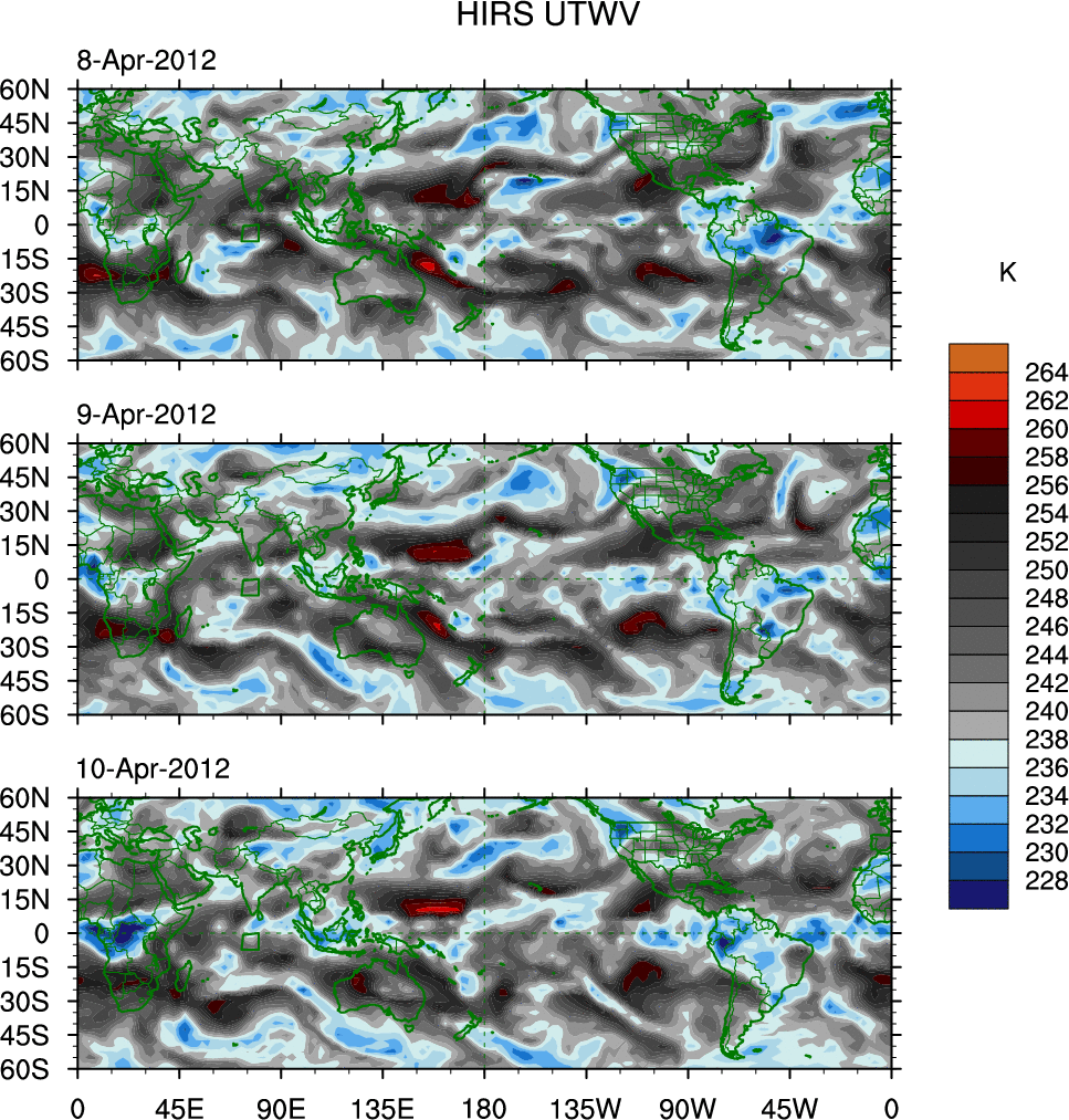 o   These brightness temperatures are observed with the HIRS sensor on the NOAA and MetOp polar-orbiting satellites.