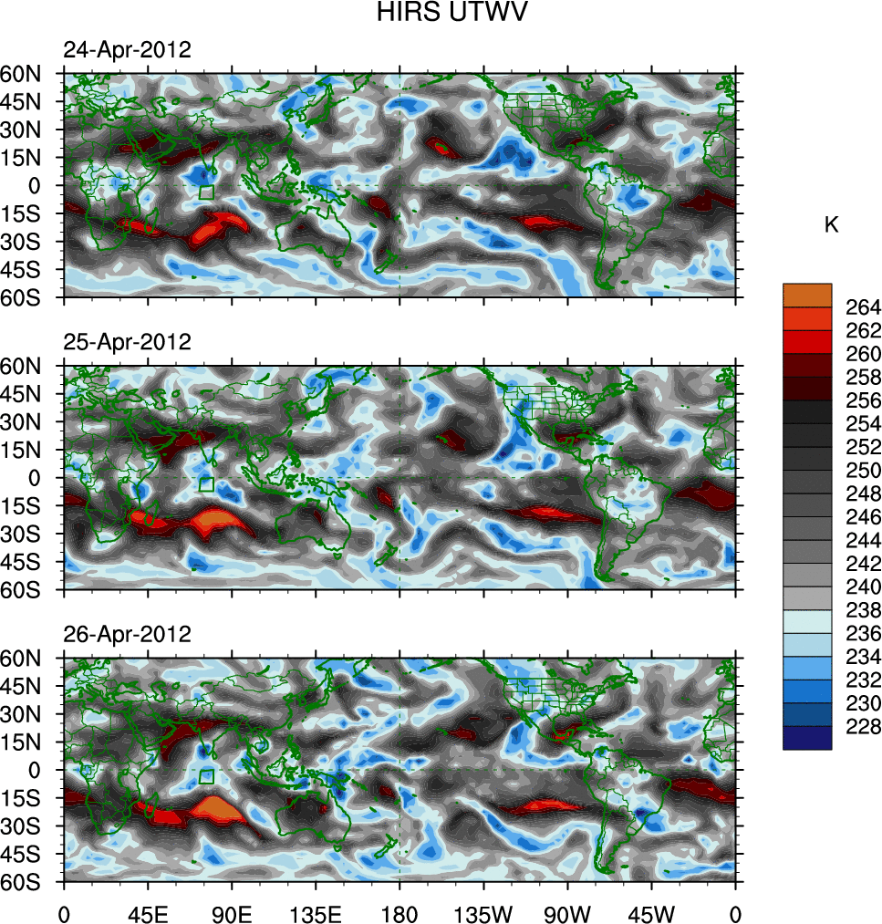 o   These brightness temperatures are observed with the HIRS sensor on the NOAA and MetOp polar-orbiting satellites.