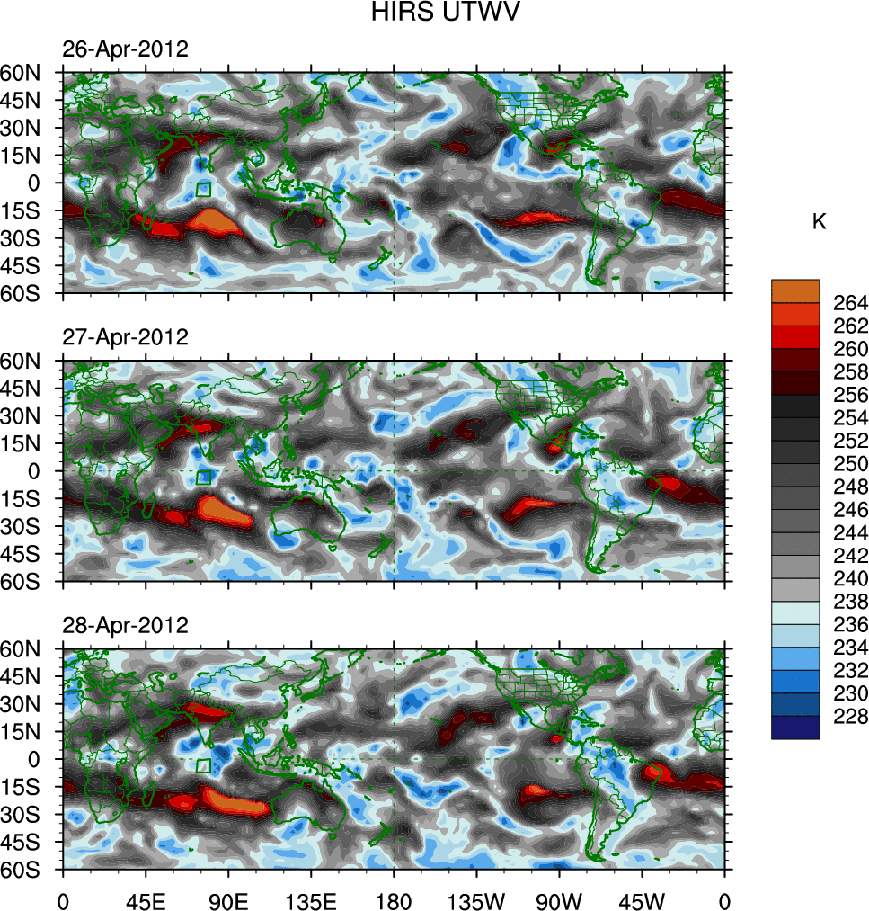 o   These brightness temperatures are observed with the HIRS sensor on the NOAA and MetOp polar-orbiting satellites.