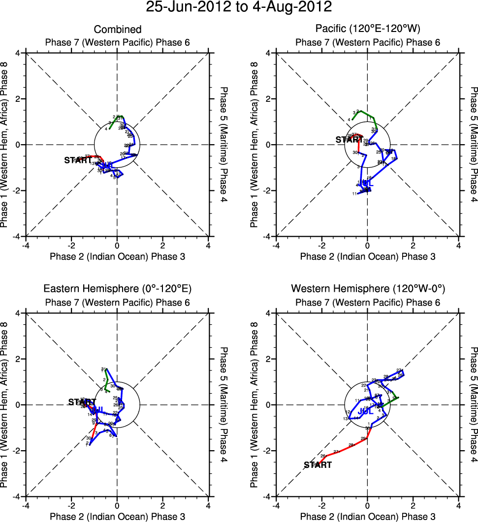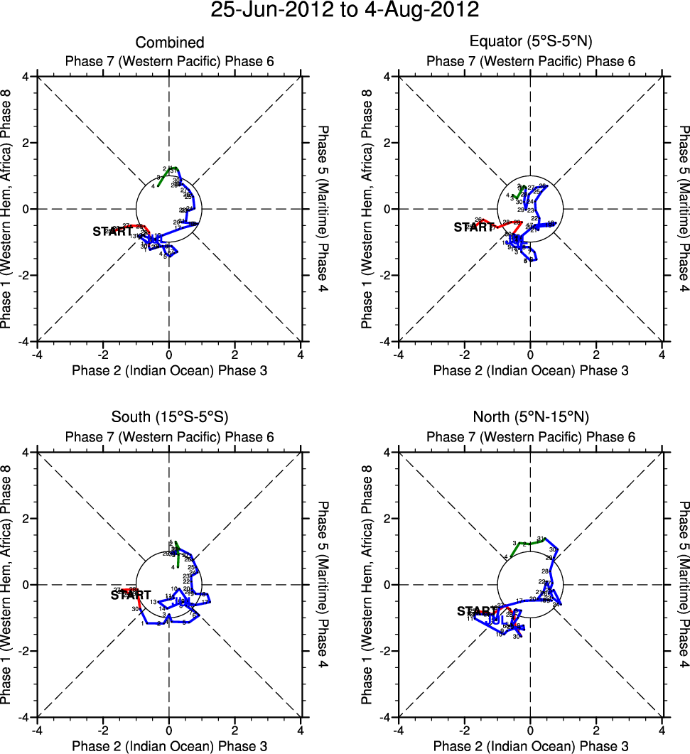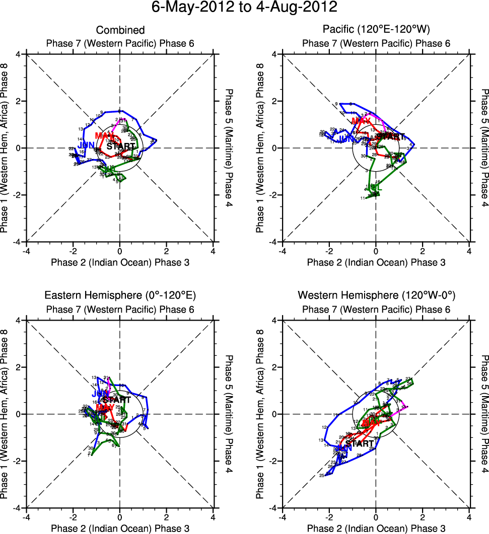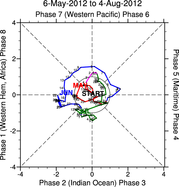 Wheeler and Hendon (2004) constructed the RMM index for monitoring the MJO. This index consists of the first two principal components (PCs) of OLR, 850-hPa zonal wind, and 200-hPa zonal wind averaged 15S-15N.