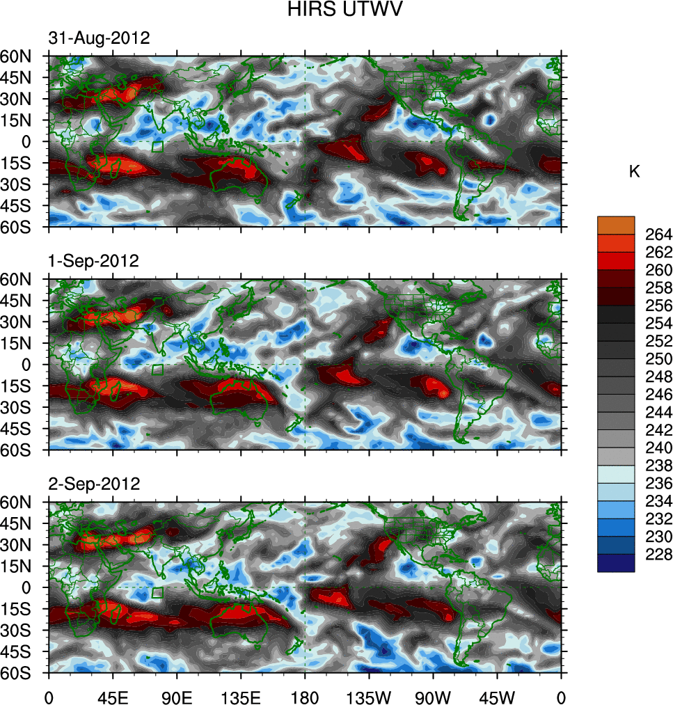 o   These brightness temperatures are observed with the HIRS sensor on the NOAA and MetOp polar-orbiting satellites.