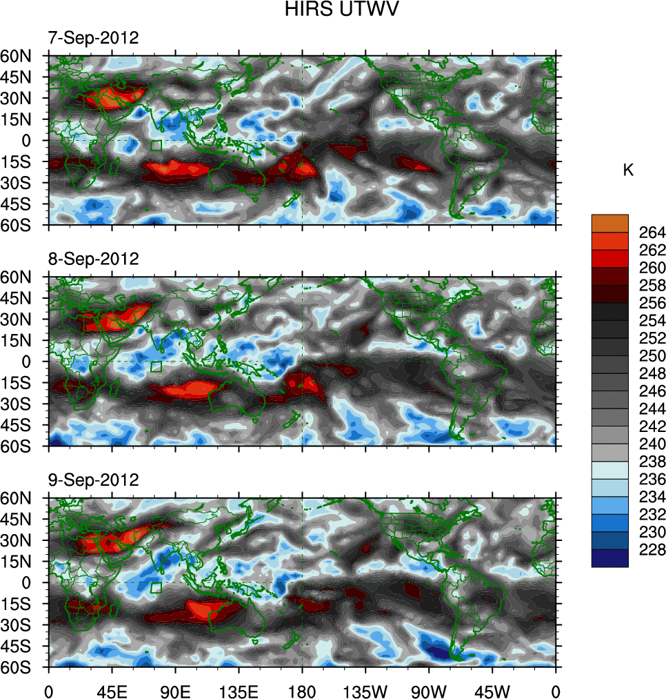 o   These brightness temperatures are observed with the HIRS sensor on the NOAA and MetOp polar-orbiting satellites.